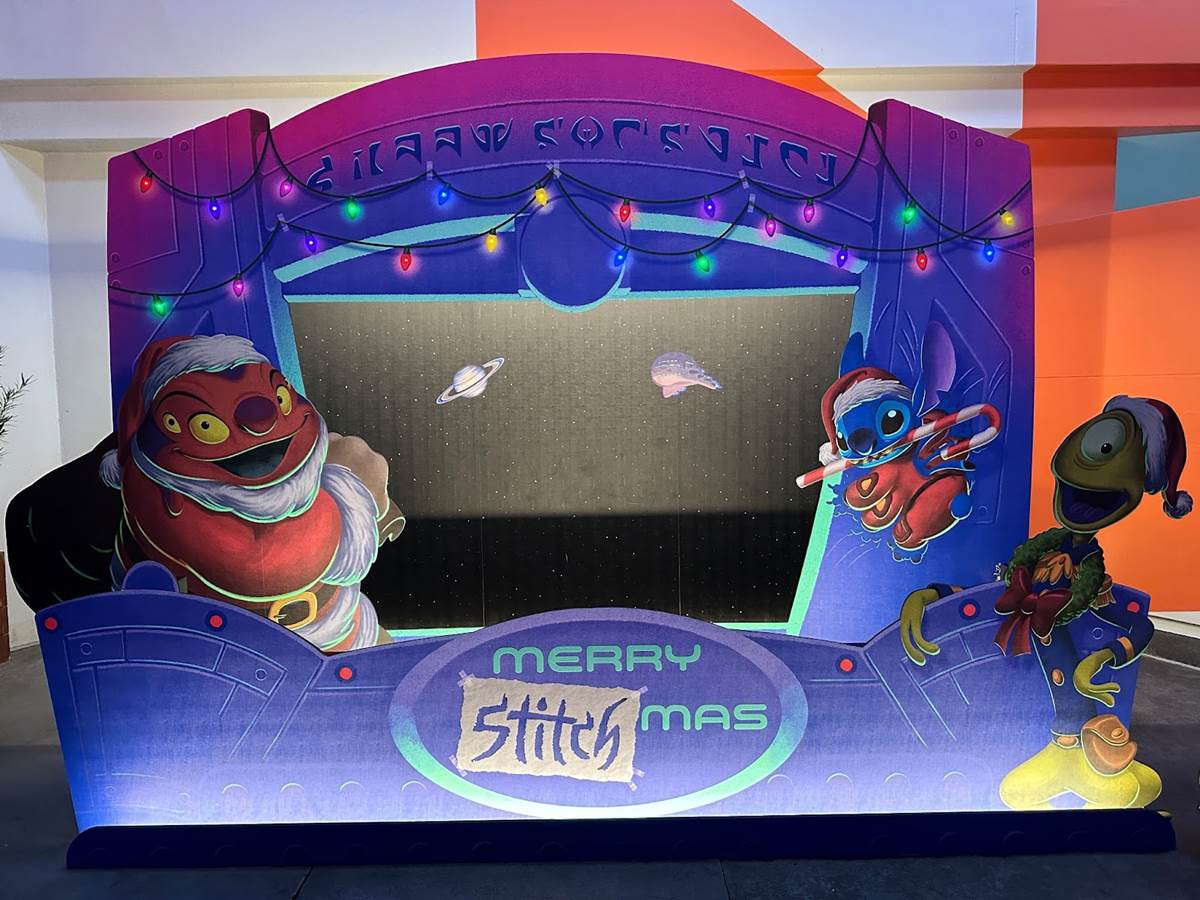 Three different photo-ops can be found throughout the park for the event, including this one in the Hub and a “Merry Stitchmas" photo-op in Tomorrowland.
