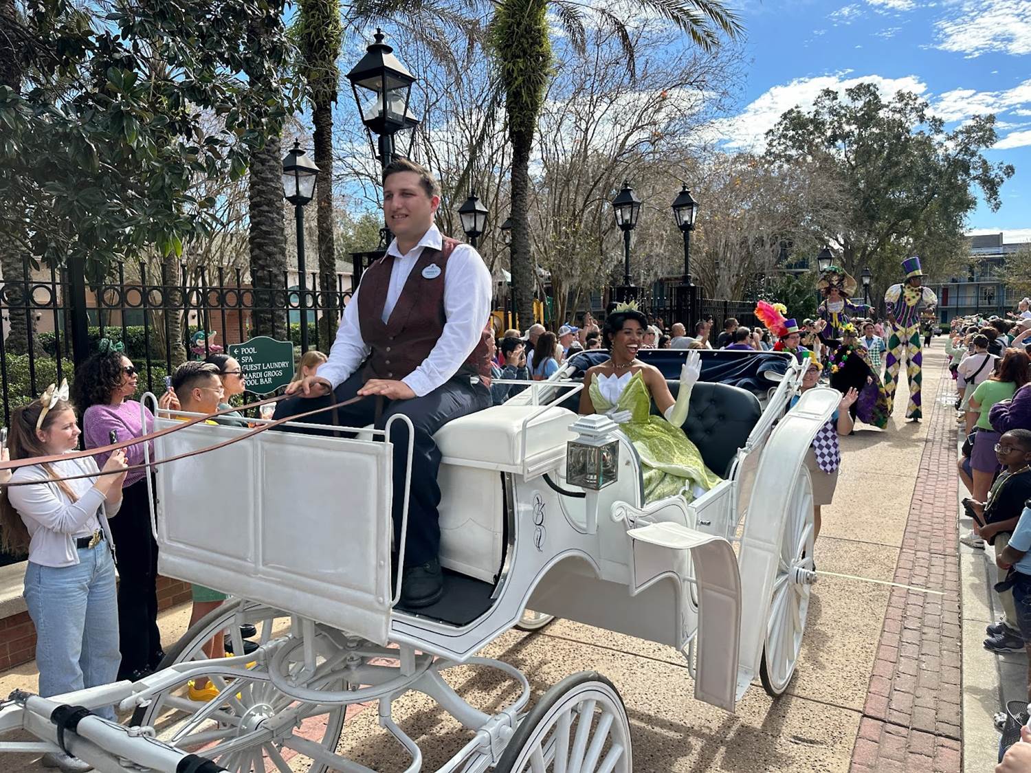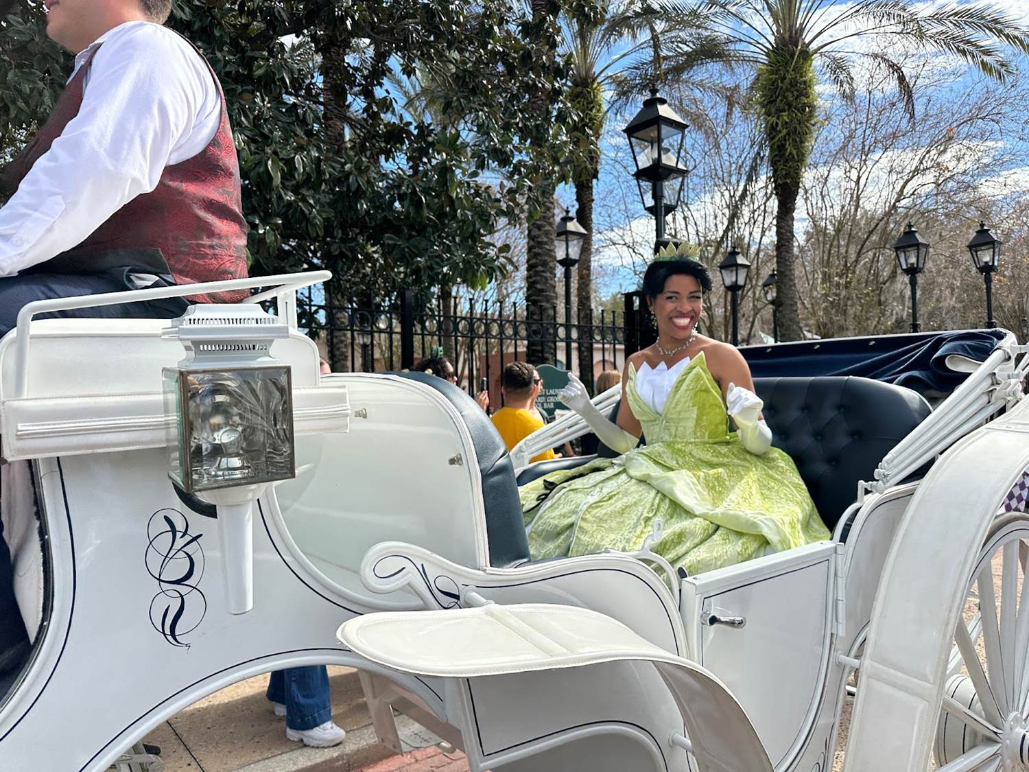 The grand marshall of the affair was, of course, Princess Tiana, who appeared in a horse-drawn carriage.