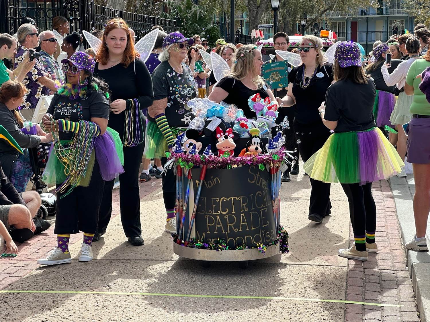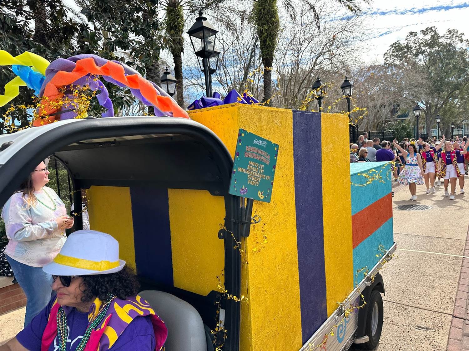 In celebration of Mardi Gras today, Disney’s Port Orleans Resort at Walt Disney World celebrated the occasion with their annual Mardi Gras Parade. This tradition led by cast members sees various different teams put together themed golf carts, and this year’s theme was Walt Disney World Park Parades Past and Present.