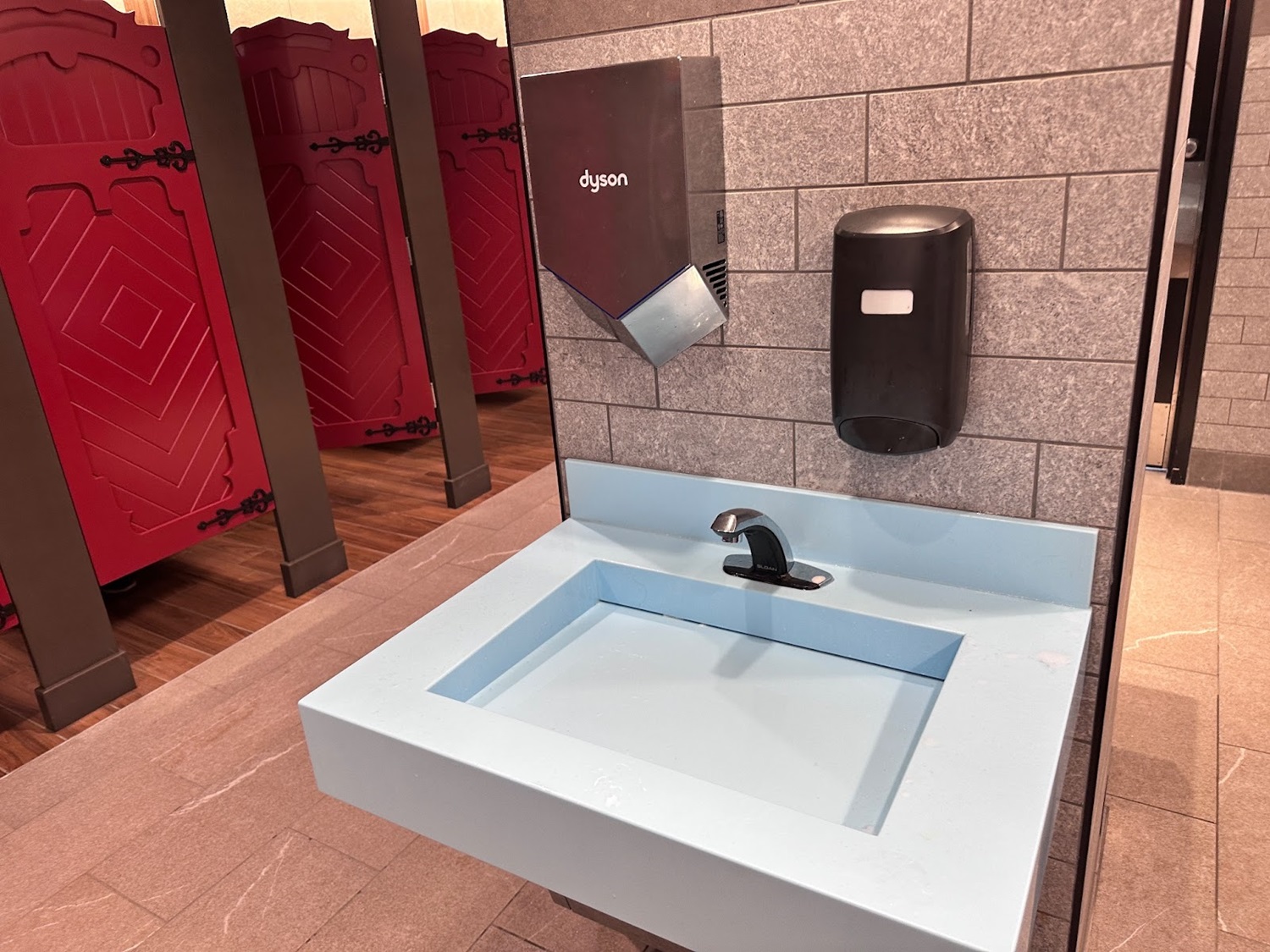- The restrooms have also been expanded to include more sinks and stalls.