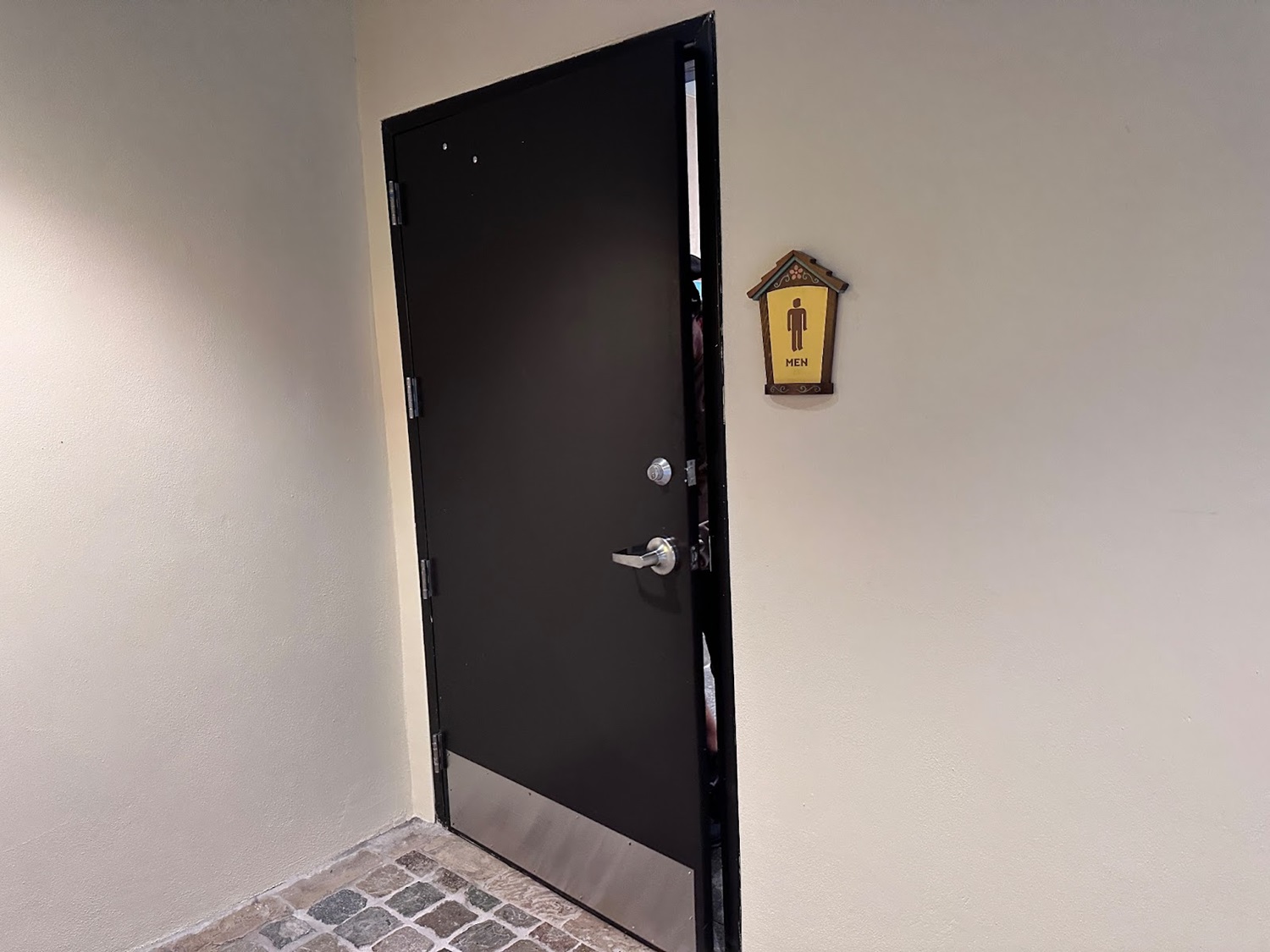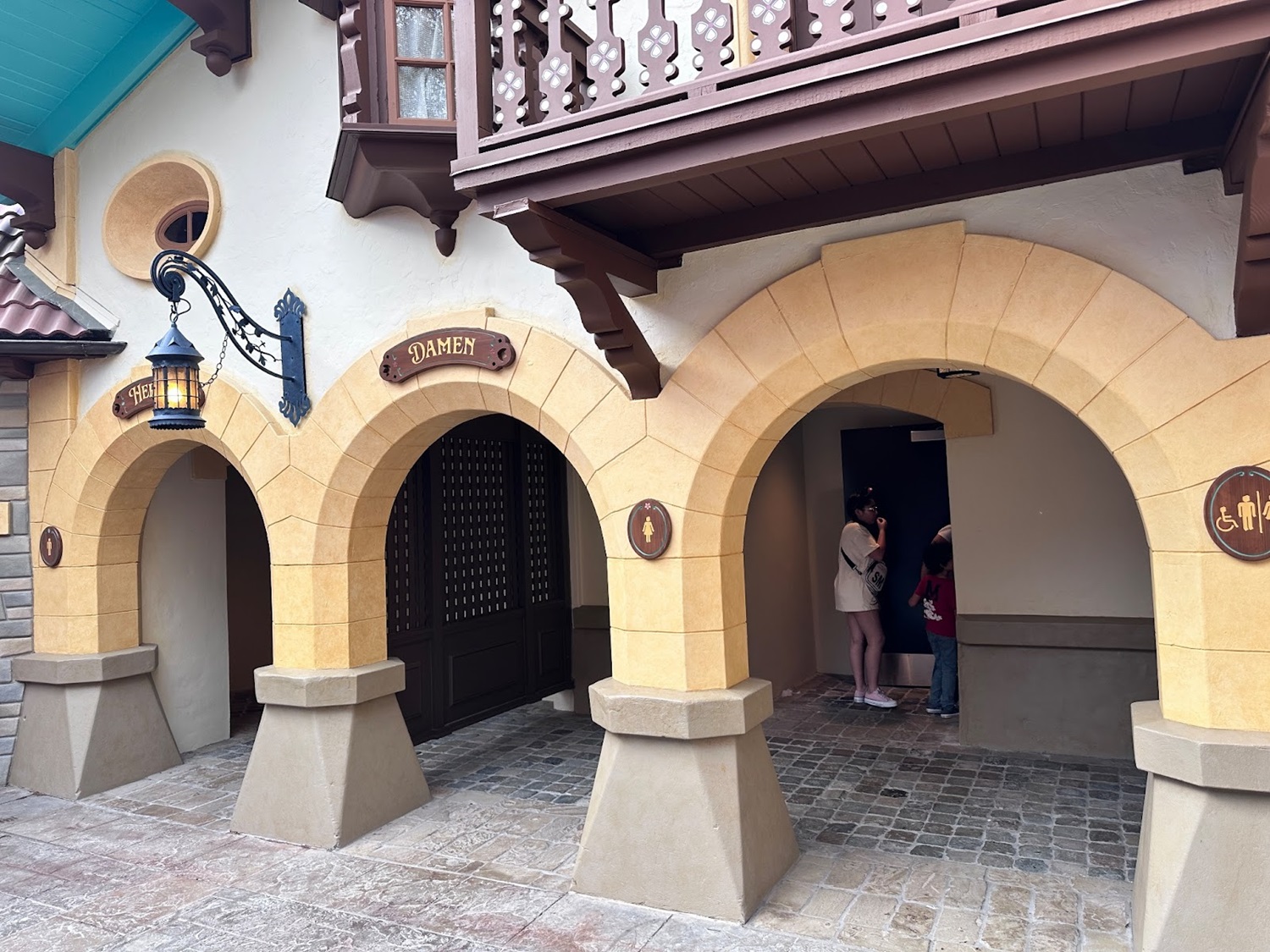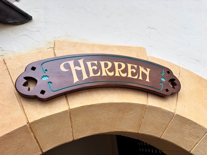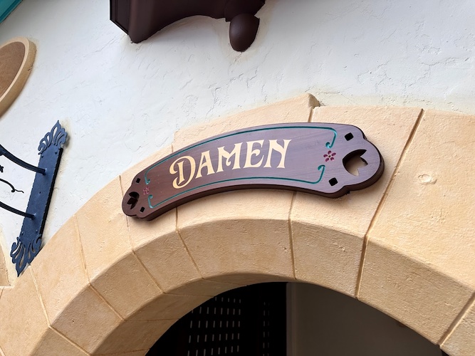 - Outside, new signage calls to mind the German influence on Disney’s version of Pinocchio, with the signage for the mens and womens rooms written as “Damen" and “Herren."