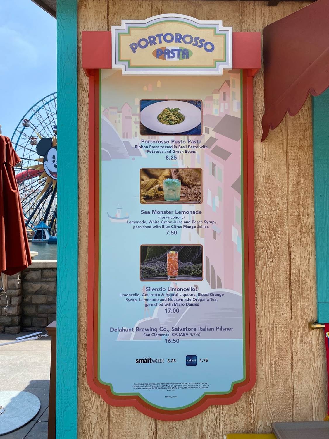- Portorossa Pasta – inspired by Luca, with offerings like the sea monster lemonade and Portorosso pesto pasta