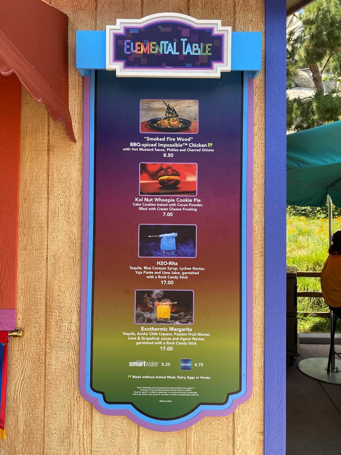- Elemental Table – inspired by Elemental, offering eats like “smoked firewood" – BBQ-spiced IMPOSSIBLE chicken with hot mustard sauce, pickles and charred onions