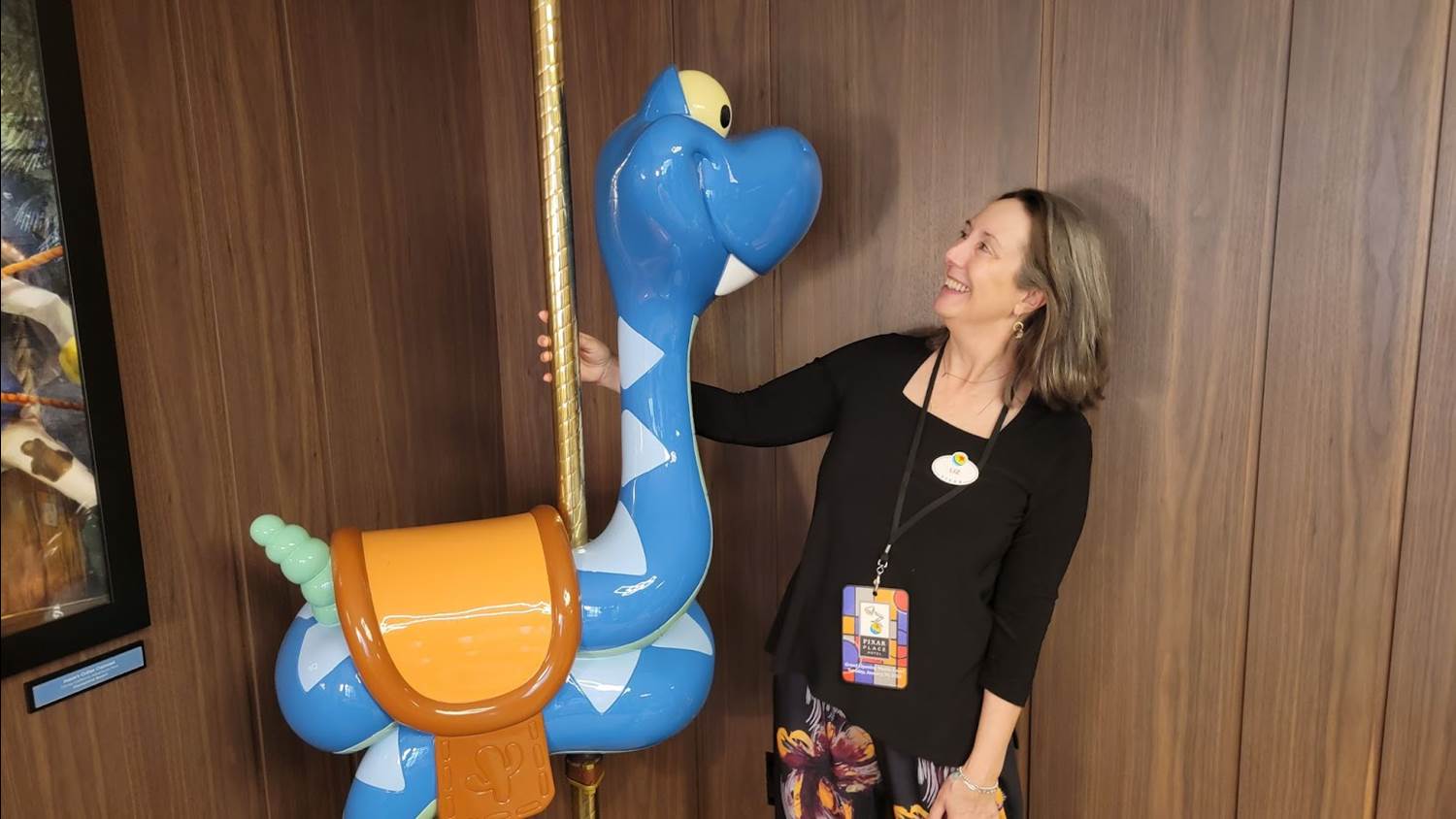 This morning ahead of the grand opening ceremony for the newly remodeled and rethemed hotel at Disneyland Resort, Laughing Place cofounder Rebekah Moseley had the opportunity to participate in a tour of the Pixar Place Hotel’s concierge lounge, which is called the Creators Club.