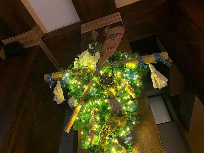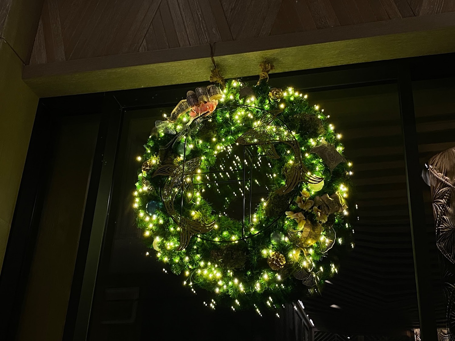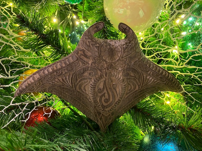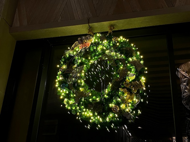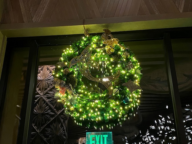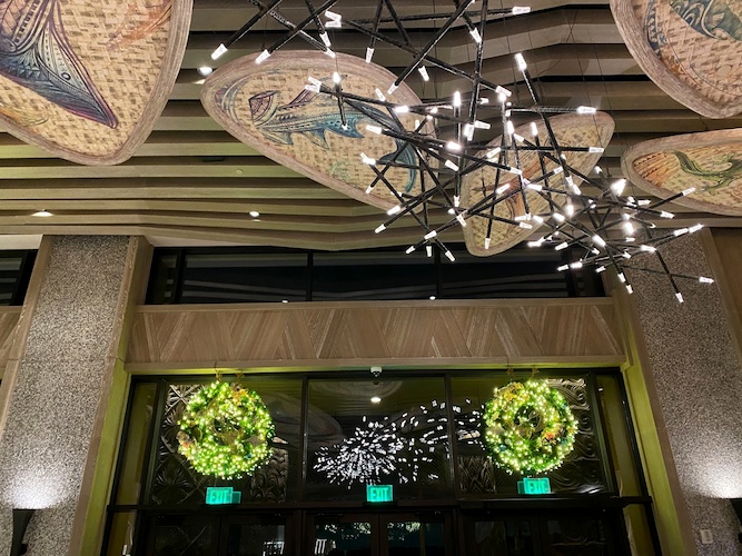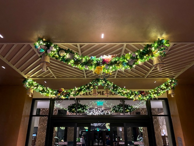 Stepping into Island Tower at Disney’s Polynesian Villas & Bungalows, guests are welcomed into a spacious and open paradise, inspired by the art of wayfinding and the natural elements used by the navigators to explore the oceans. Those designs are expanded upon even further with the addition of Polynesian-inspired holiday decor that perfectly complements the lobby’s design.