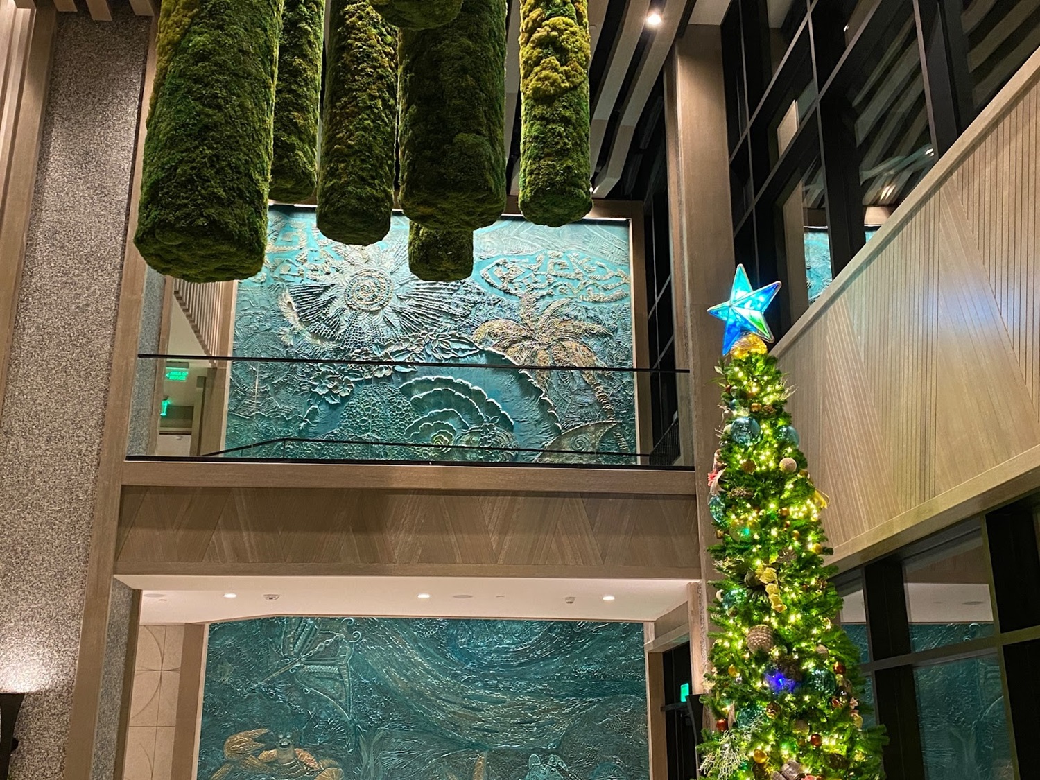 Following its media previews last weekend, the lobby of the new Island Tower at Disney’s Polynesian Villas & Bungalows has been decked out for the festive season – just in time for Christmas!