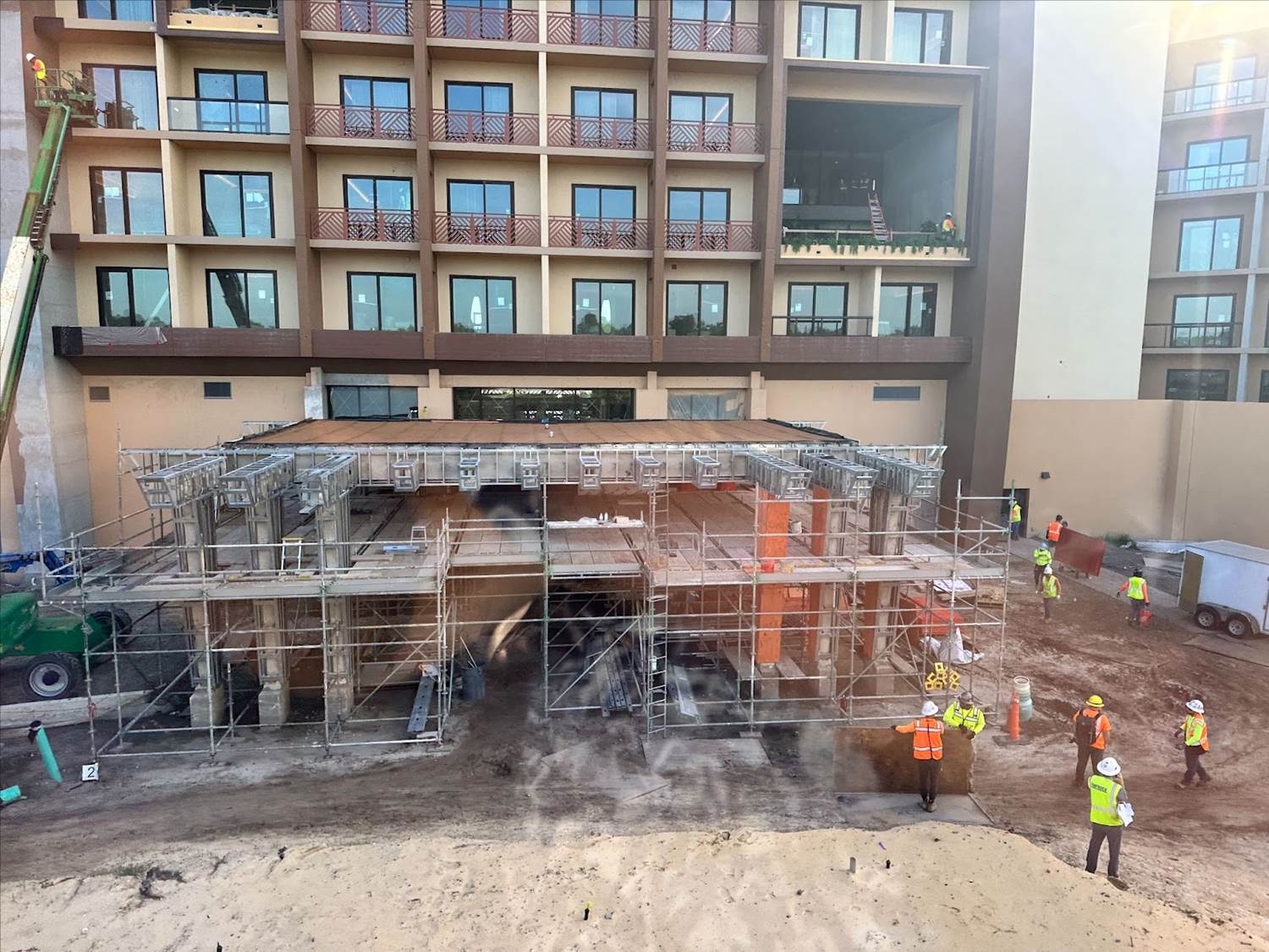 Construction continues on the new Island Tower at Disney’s Polynesian Village Resort.