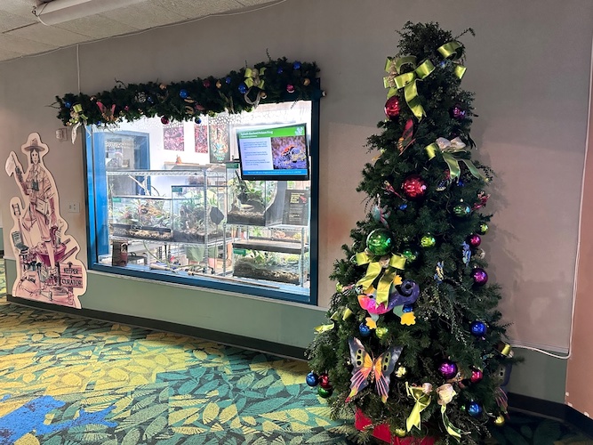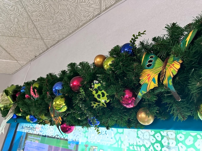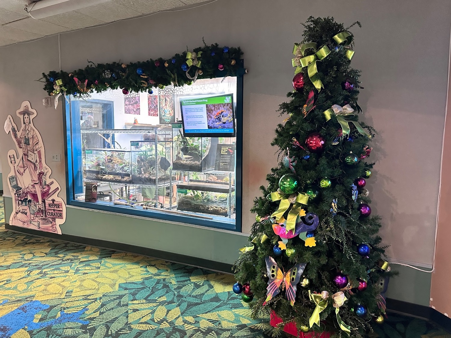 More decor can be found elsewhere in Conservation Station, with a Christmas tree and garland cleverly incorporating animals like frogs and butterflies.