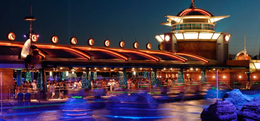 Aquatopia is so weird and so fun. Planted in the waters of Port Discovery in Tokyo DisneySea, this take on the Disney Parks classic Autopia is a zippy journey to nowhere. It feels as if Luigi’s Rollickin Roadsters were set free to roam about all of Carsland. It uses trackless ride technology in the water, making it hard to tell where you are going to spin off next. Rockwork waterfalls and water jets make this synchronized swimming-like attraction so beautiful to look at. I would love to have something like this brought to other Disney Parks.