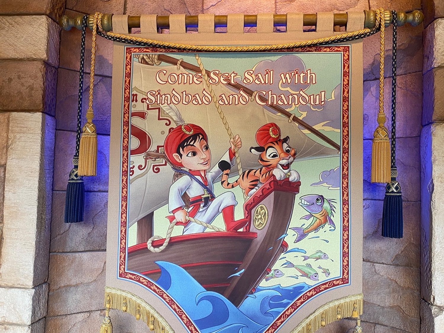 Perhaps my most anticipated attraction in all of the Tokyo Disney Resort was Sindbad’s Storybook Voyage, which was closed for a lengthy refurbishment this year, but luckily reopened on my last day here. As I entered the queue, I was greeted by smiling cast members with their adorable Chandu plush, welcoming guests back to this attraction.