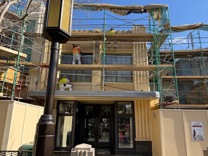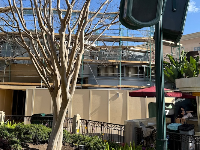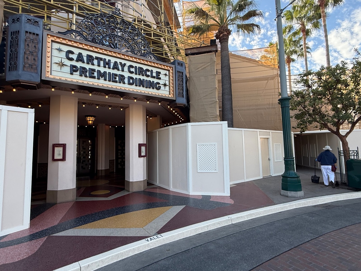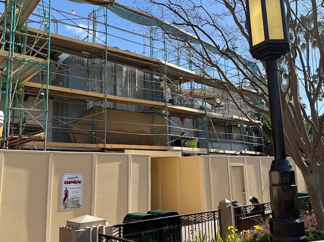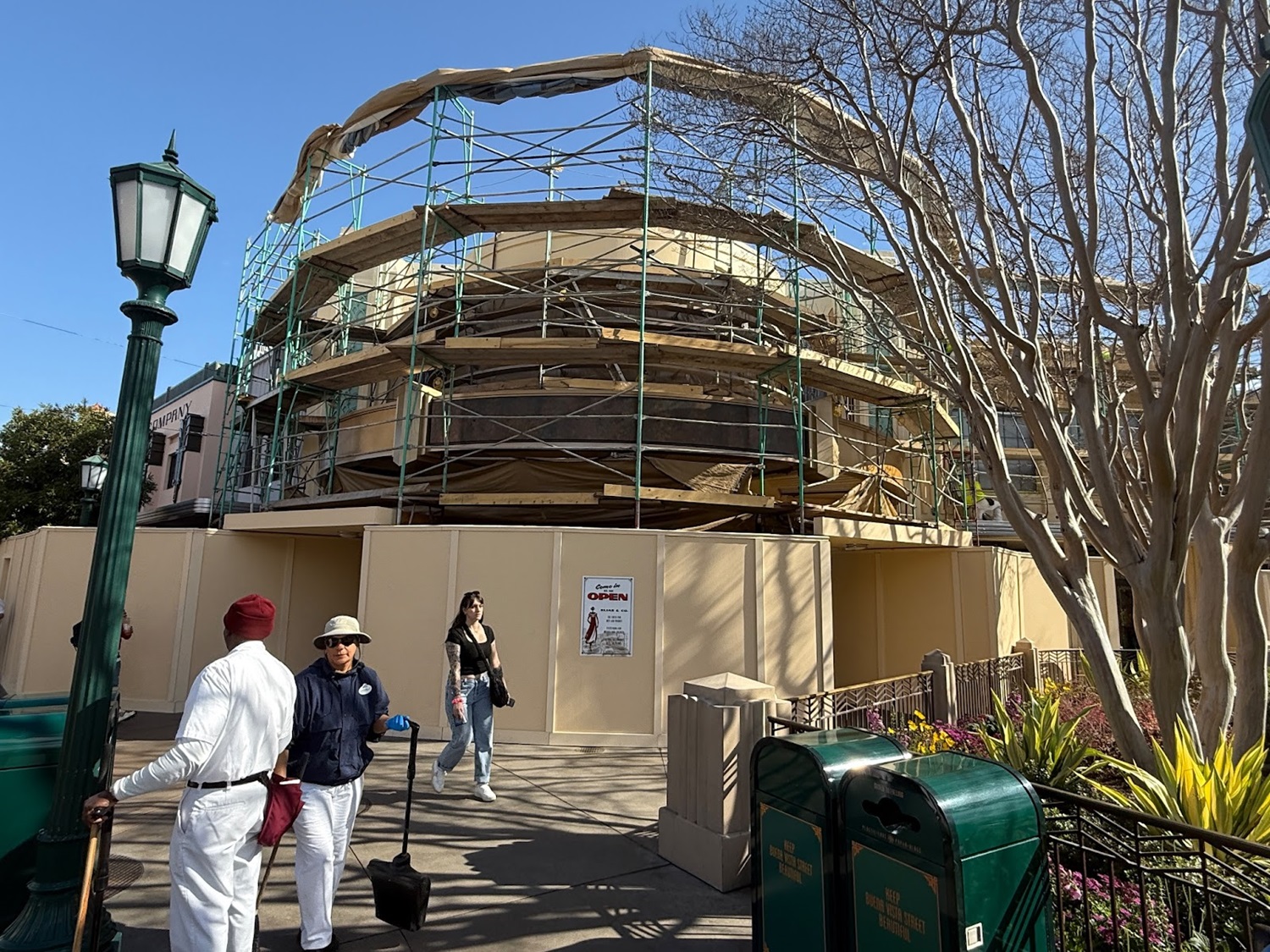 Also currently covered in scaffolding and tarps is the Carthay Circle Restaurant. As with the stores, the restaurant remains open to patrons at this time.