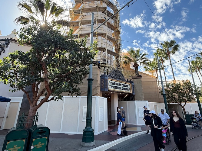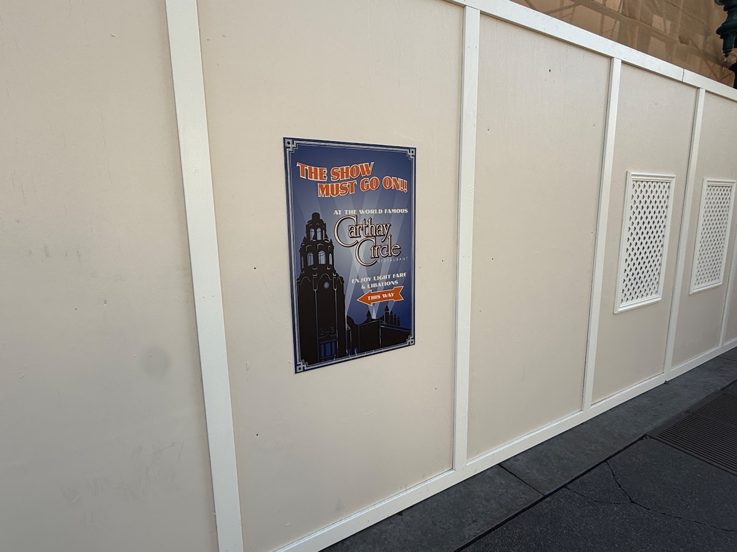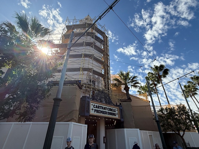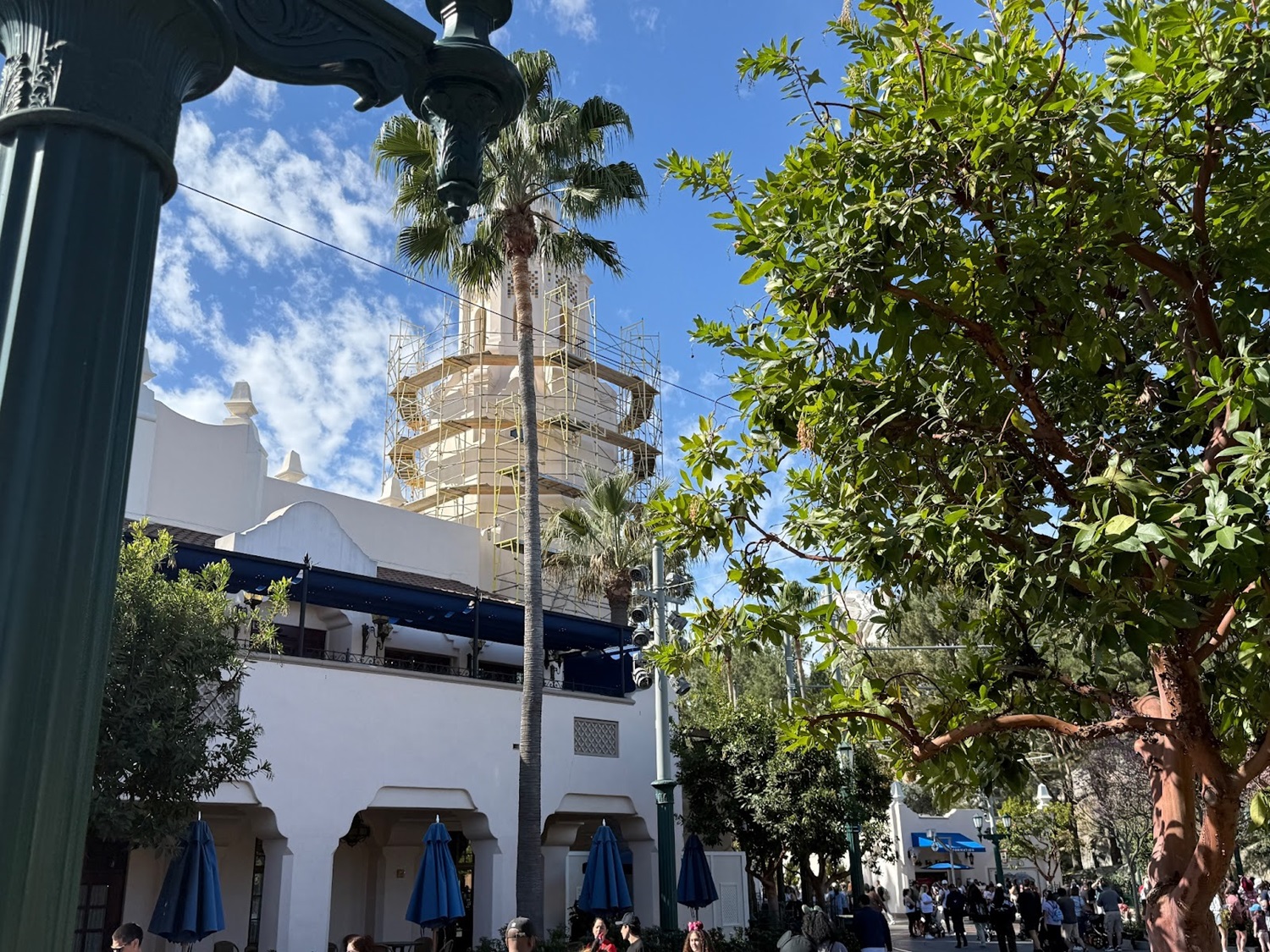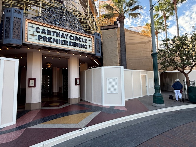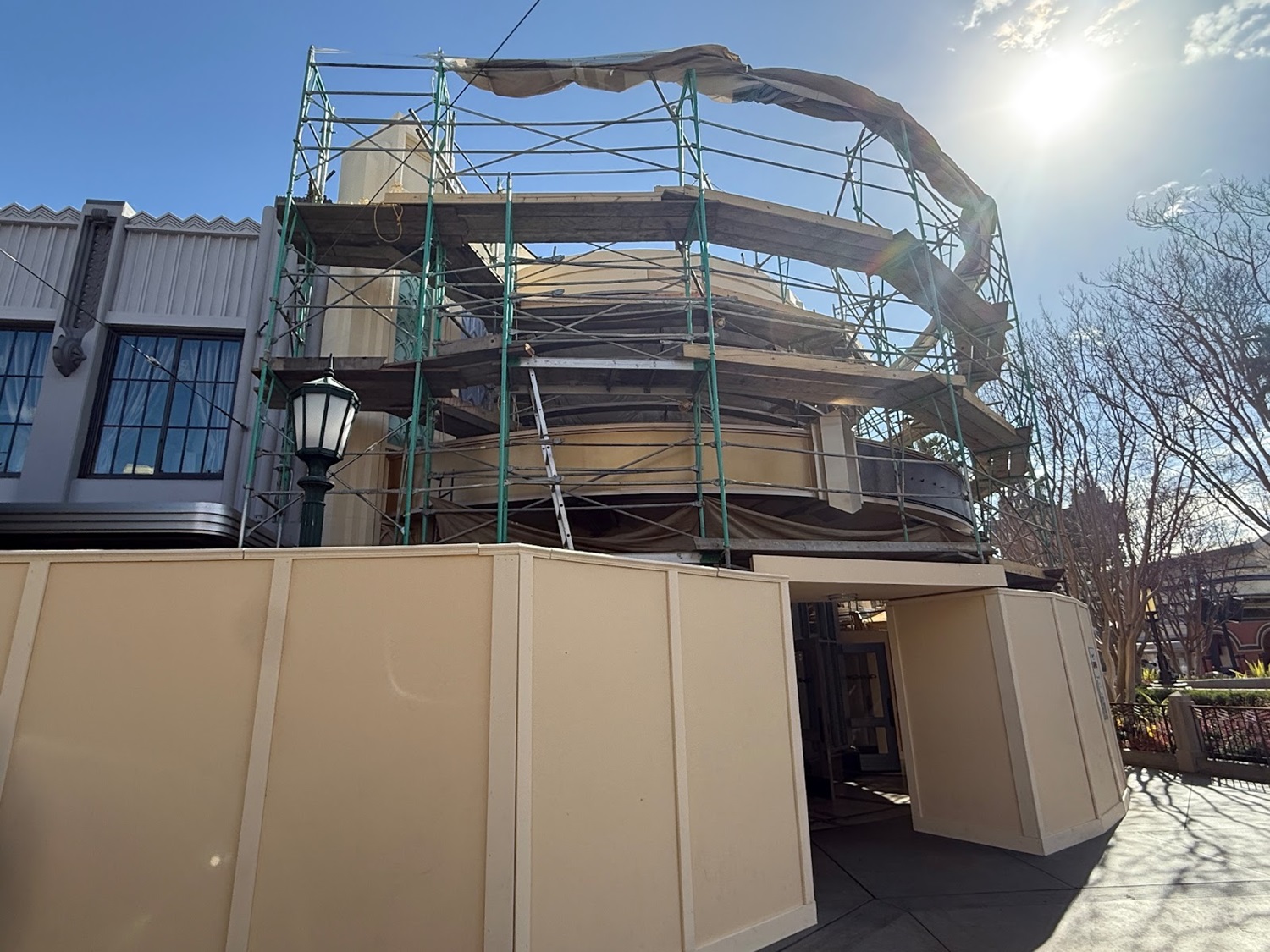 Also currently covered in scaffolding and tarps is the Carthay Circle Restaurant. As with the stores, the restaurant remains open to patrons at this time.