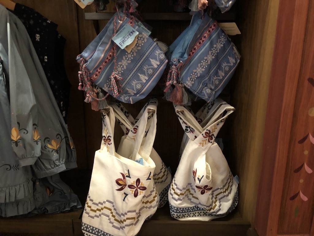 The selection of Arendelle fashions are simple and straightforward (beret, sweaters, handbags, socks), while kids' styles lean more toward the characters like Olaf and Marshmallow; and Elsa and Anna-inspired looks.