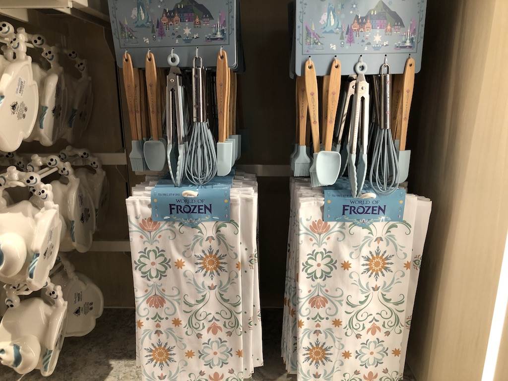 Arendelle has three shopping locations in total: two stores and one outdoor merchandise cart. The most interesting of the bunch is Tick Tock Toys & Collectibles, the exit gift shop for Frozen Ever After that’s full of apparel and yes, toys! At the front of the land is Northern Delights, a hybrid gift and pastry shop selling kitchen goods and sweet snacks; and the merchandise cart is located across from Playhouse in the Woods.