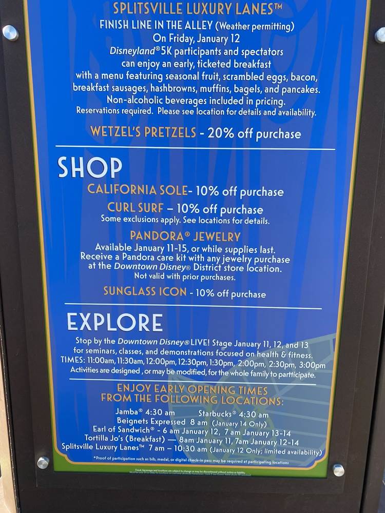 Outside the runDisney Expo, once attendees made their way over to the Downtown Disney District, there were also a number of discounts activities for participants in this weekend’s event. For example, I stumbled across an exercise training session in progress on the new lawn. I’ve included images of the various signage in case you’d like more information on these fun offerings.