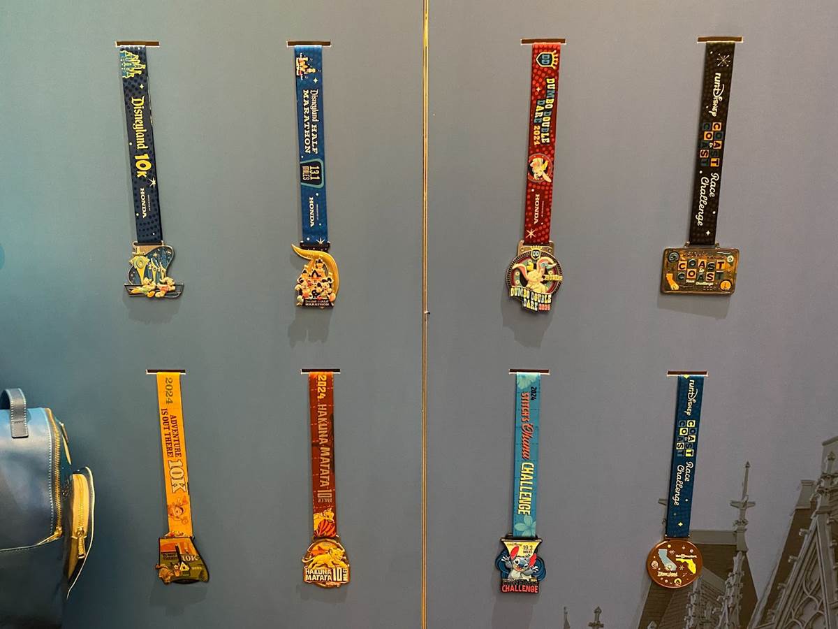 Along one wall was a display of a variety of attractive runDisney medals one could attain by participating in the races.