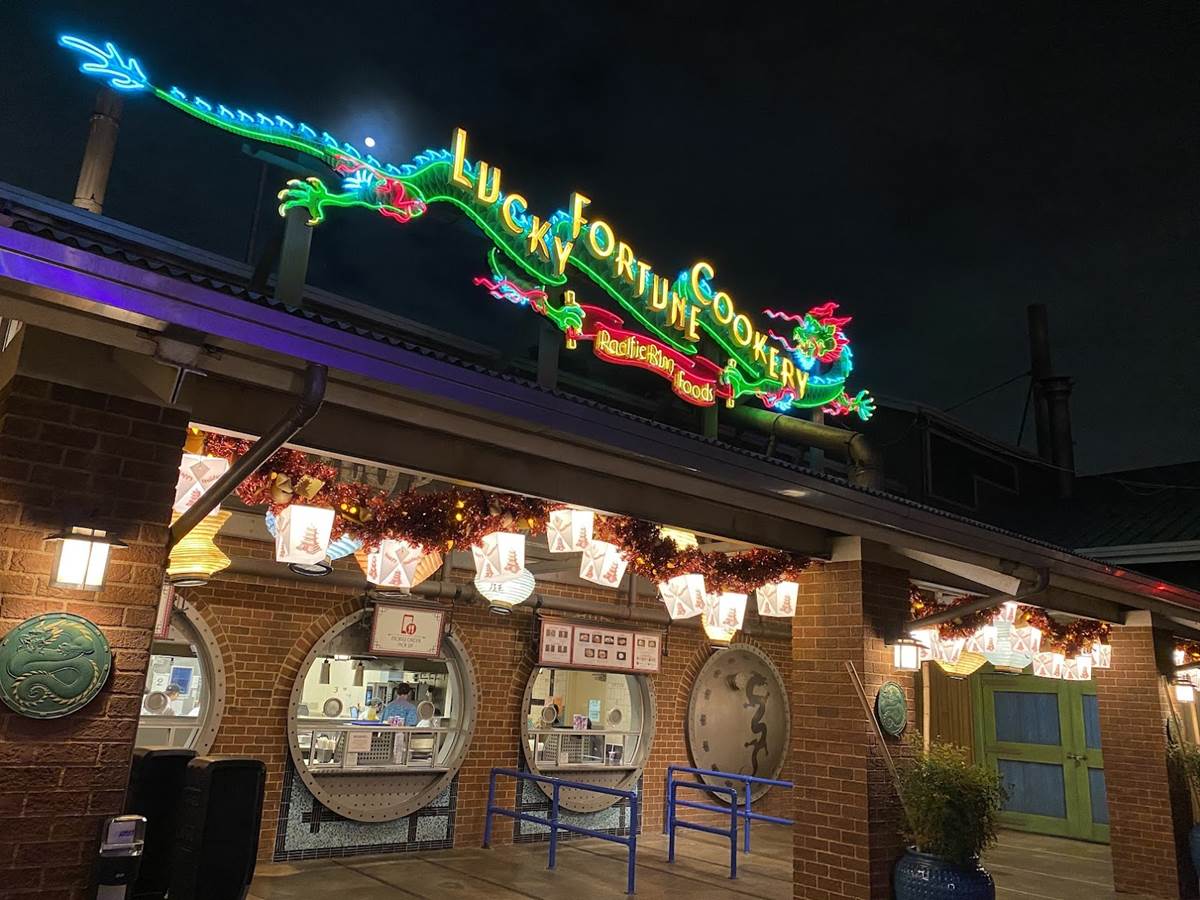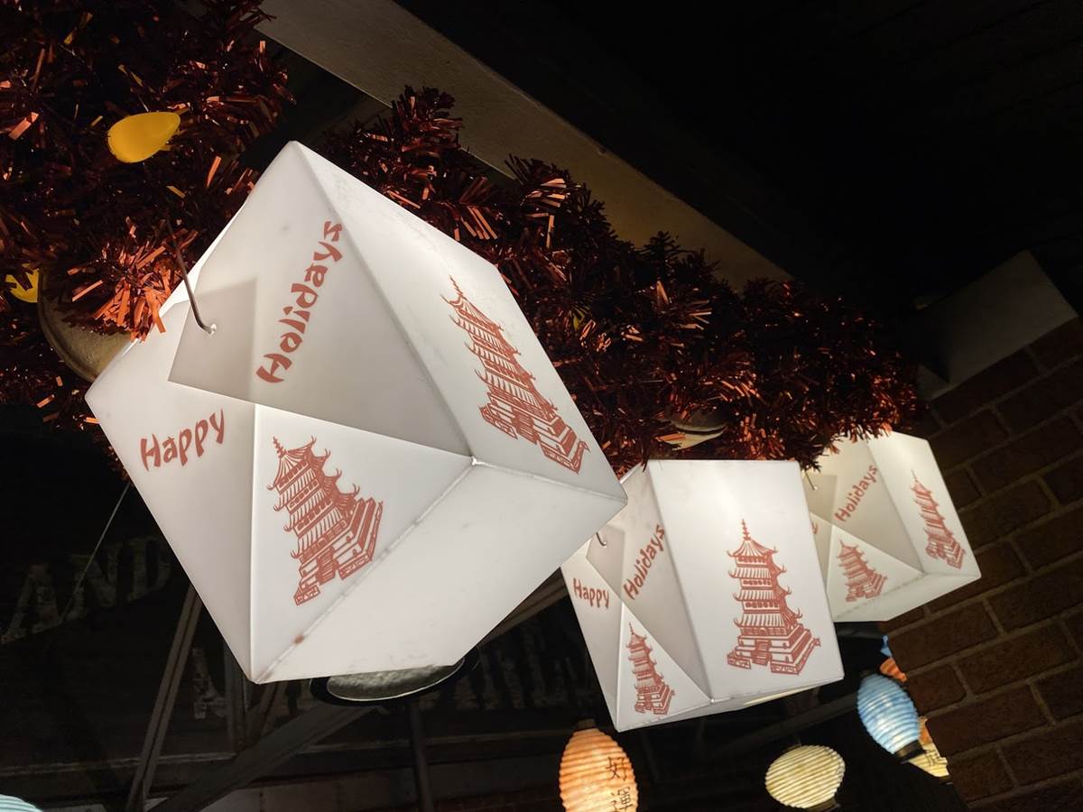 The Lucky Fortune Cookery continues to have the greatest holiday lights in the history of seasonal decorations with with string of light-up take-out boxes.