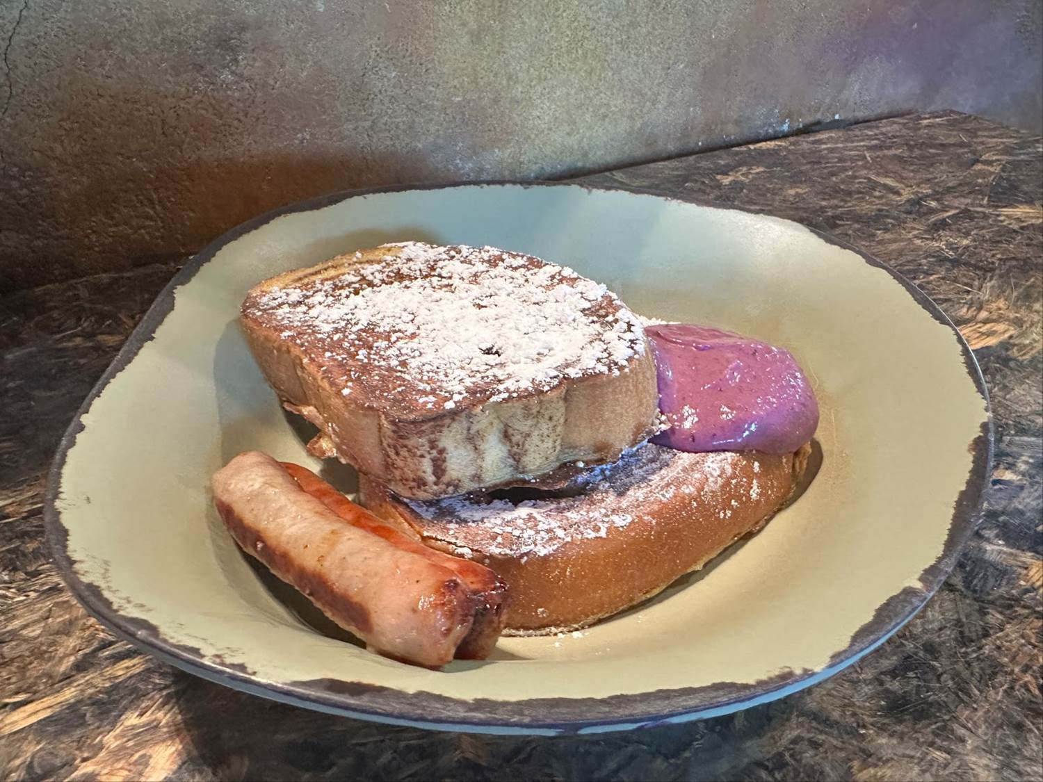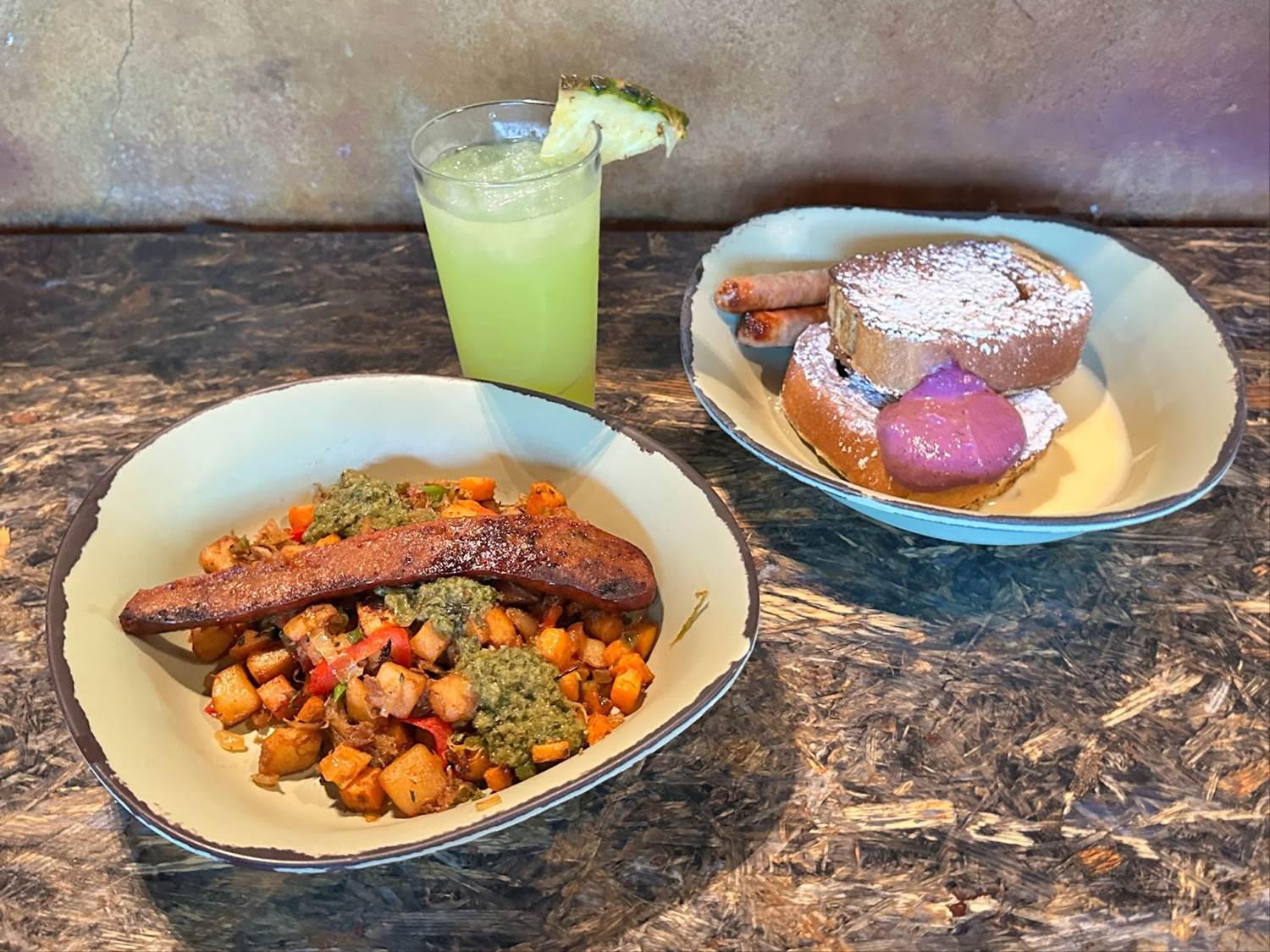 Most known for their make-your-own bowls, the breakfast choices feature morning favorites with a Pandora twist. This includes a Pork Shoulder Potato Hash (very similar to their bowls available for lunch and dinner) and Cinnamon French Toast (featuring blueberry cream cheese).