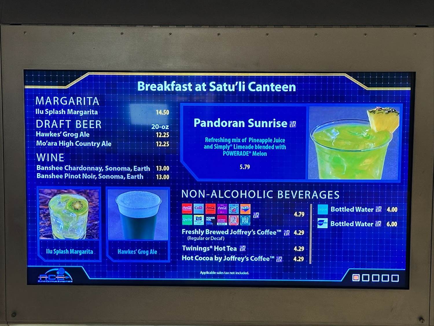 Also available is the Pandoran Sunrise: a pineapple, lime, and melon flavored mocktail that will brighten anyone’s morning on the far off planet.