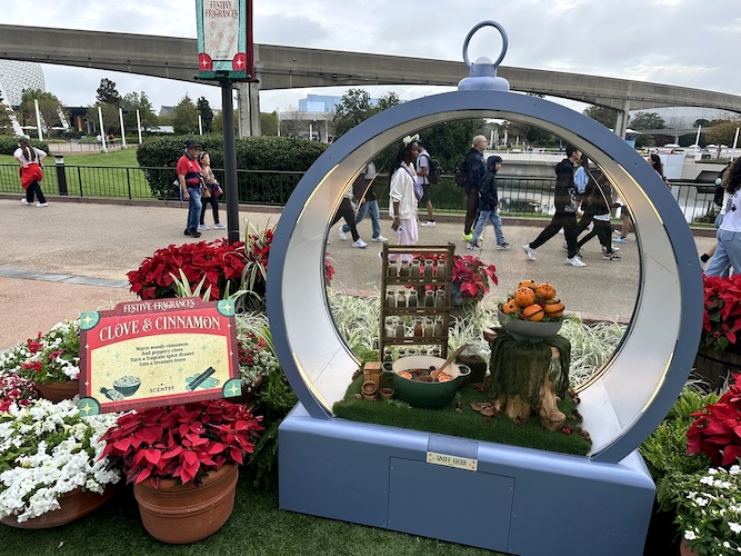 An all-new seasonal display, presented by Scentsy, has debuted for the EPCOT International Festival of the Holidays.