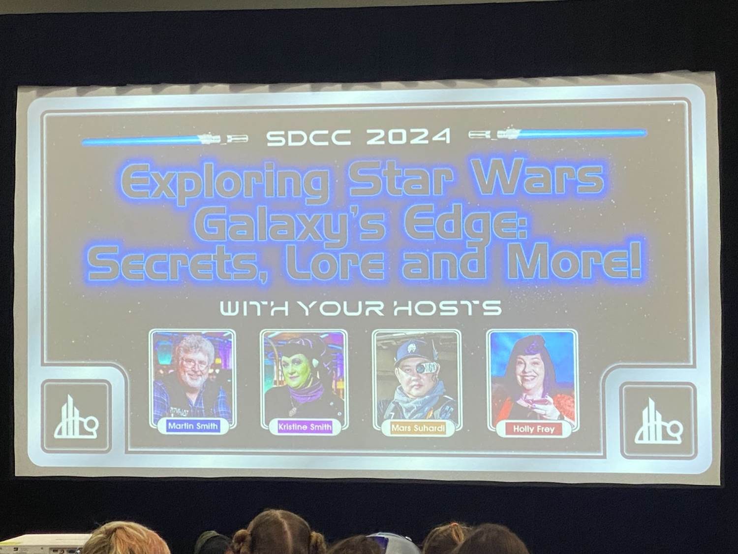 One week ago today, our friends Kristine and Martin Smith (from the “Heroes of the Halcyon" podcast) joined forces with Holly Frey (from “Full of Sith") and Disney-bounder Mars Suhardi to host a panel all about Star Wars: Galaxy’s Edge at San Diego Comic-Con 2024. Below you’ll find my brief recap of what attendees learned during this presentation.