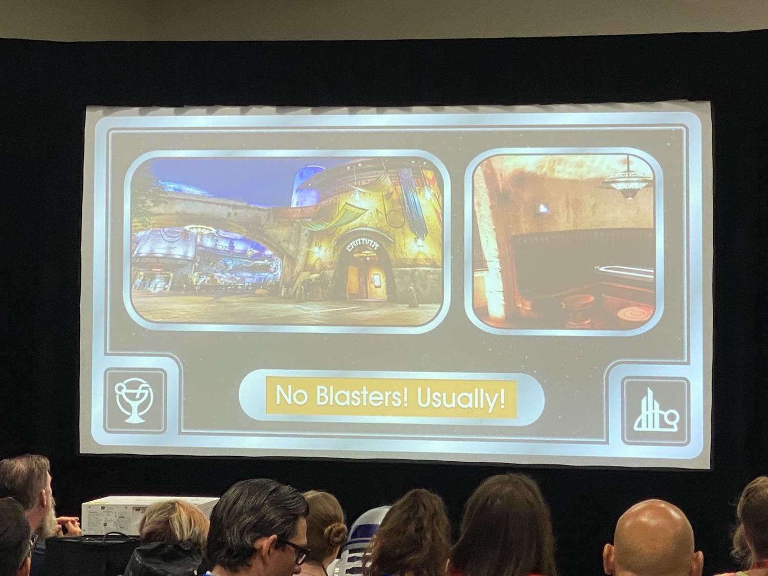 The team provided a handy list of phrases to use around Black Spire Outpost, and then went into the lore of Batuu that has been expanded upon in Star Wars publishing, such as Vi Moradi’s story in the Black Spire novel. They also went through costuming guidelines for the land.