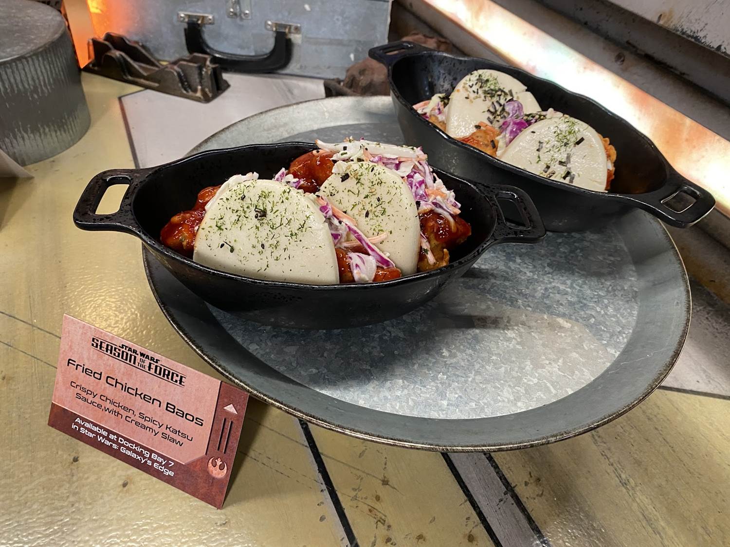 - Fried Chicken Baos: Two crispy chicken baos, spicy katsu sauce, and creamy slaw (New)