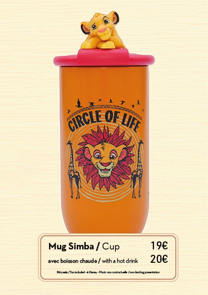 - The Simba Cup is 19€ without drink or 20€ with a hot drink.