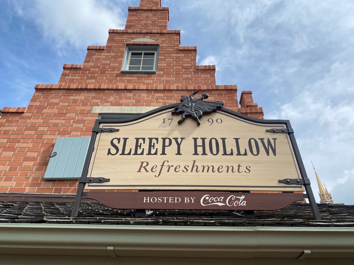 The signage at Sleepy Hollow at Walt Disney World’s Magic Kingdom has been changed, reflecting a new sponsorship from Coca-Cola. The soda company now gets a “Hosted by Coca-Cola" addition found at the bottom of the signs.