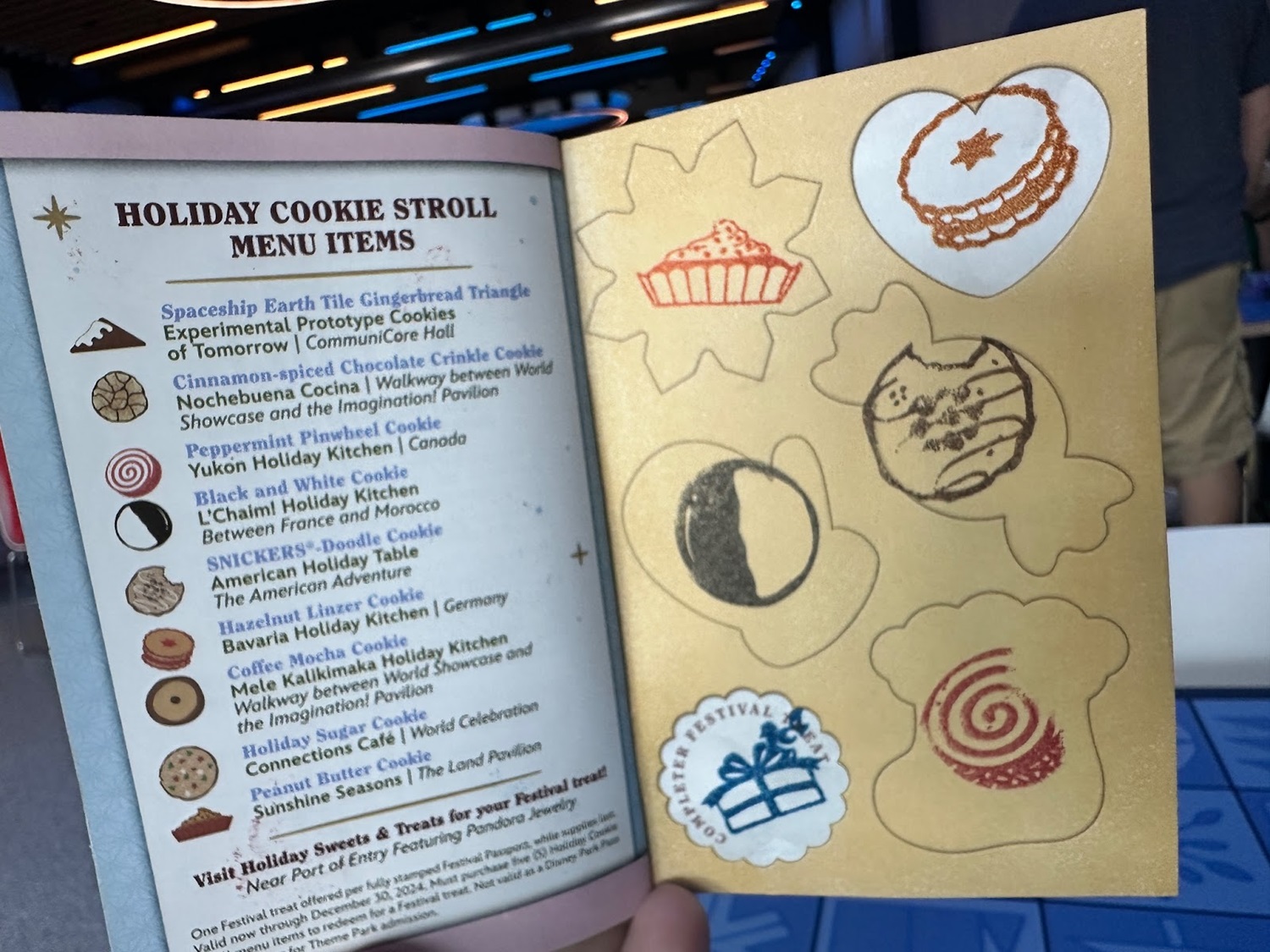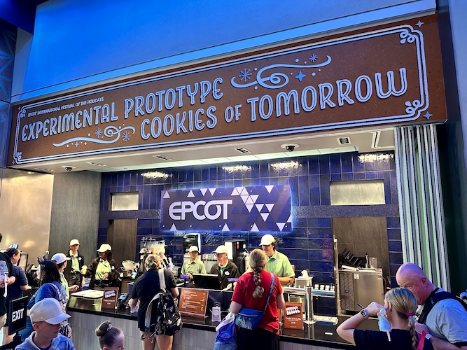 The excellently named Experimental Prototype Cookies of Tomorrow can also be found here, serving up delicious cookies such as a gingerbread triangle decorating kit just like those that make up the Spaceship Earth display.