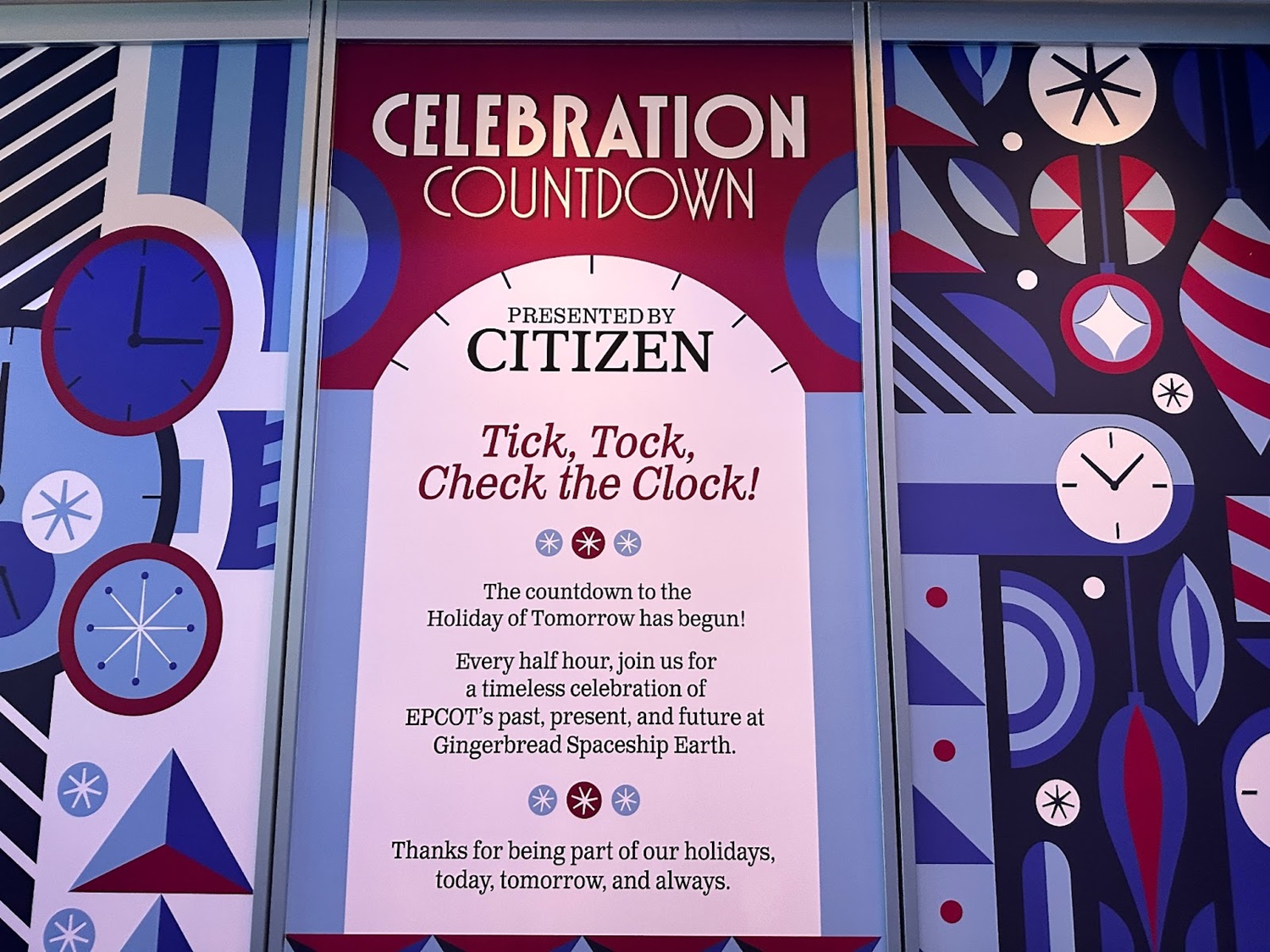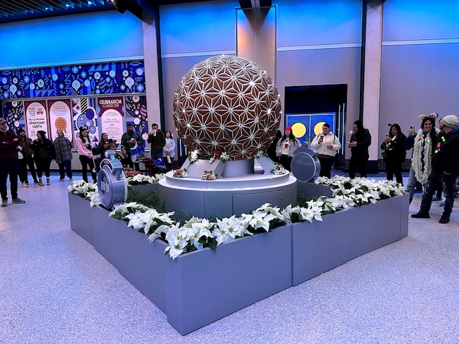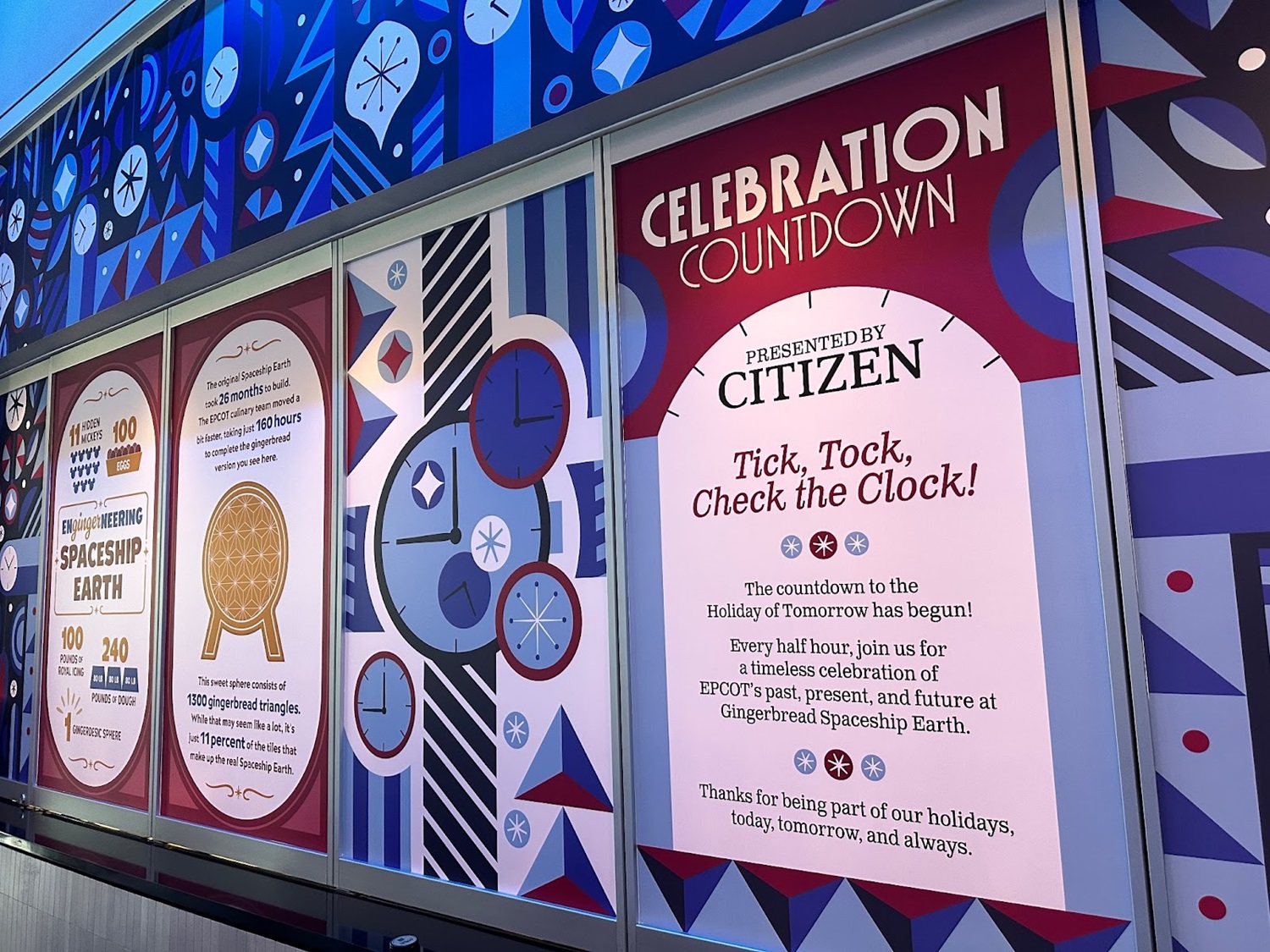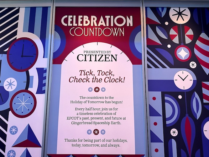 The geodesic sphere made up of hundreds of handcrafted gingerbread triangles even lights up and dances to music periodically throughout the day, just like its full-size counterpart! A countdown clock, presented by Citizen, counts down to each light show.