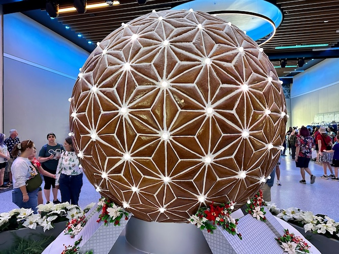 This past summer’s opening of CommuniCore Hall has allowed for some new experiences for this year’s EPCOT International Festival of the Holidays, including a spectacular new Spaceship Earth gingerbread display.