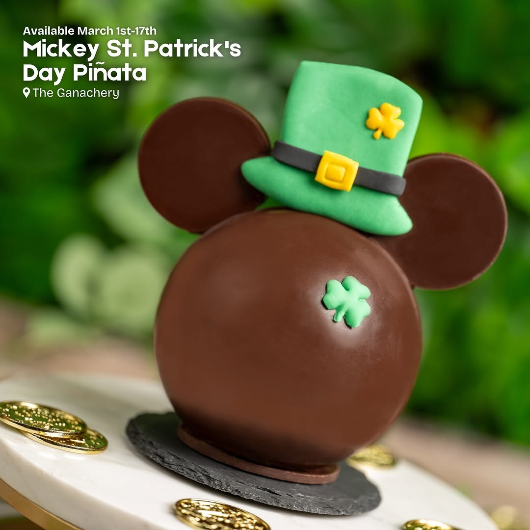 - Mickey St. Patrick's Day Piñata: Dark chocolate piñata filled with mint marshmallows – available March 1st-17th at The Ganachery in Disney Springs