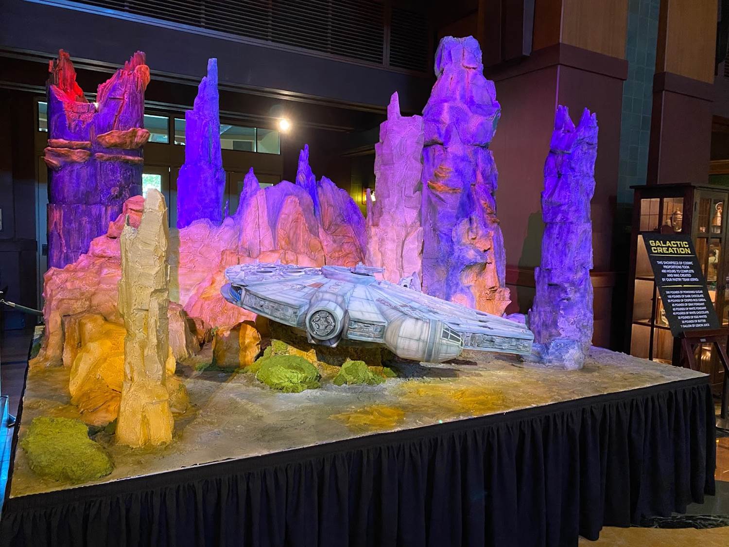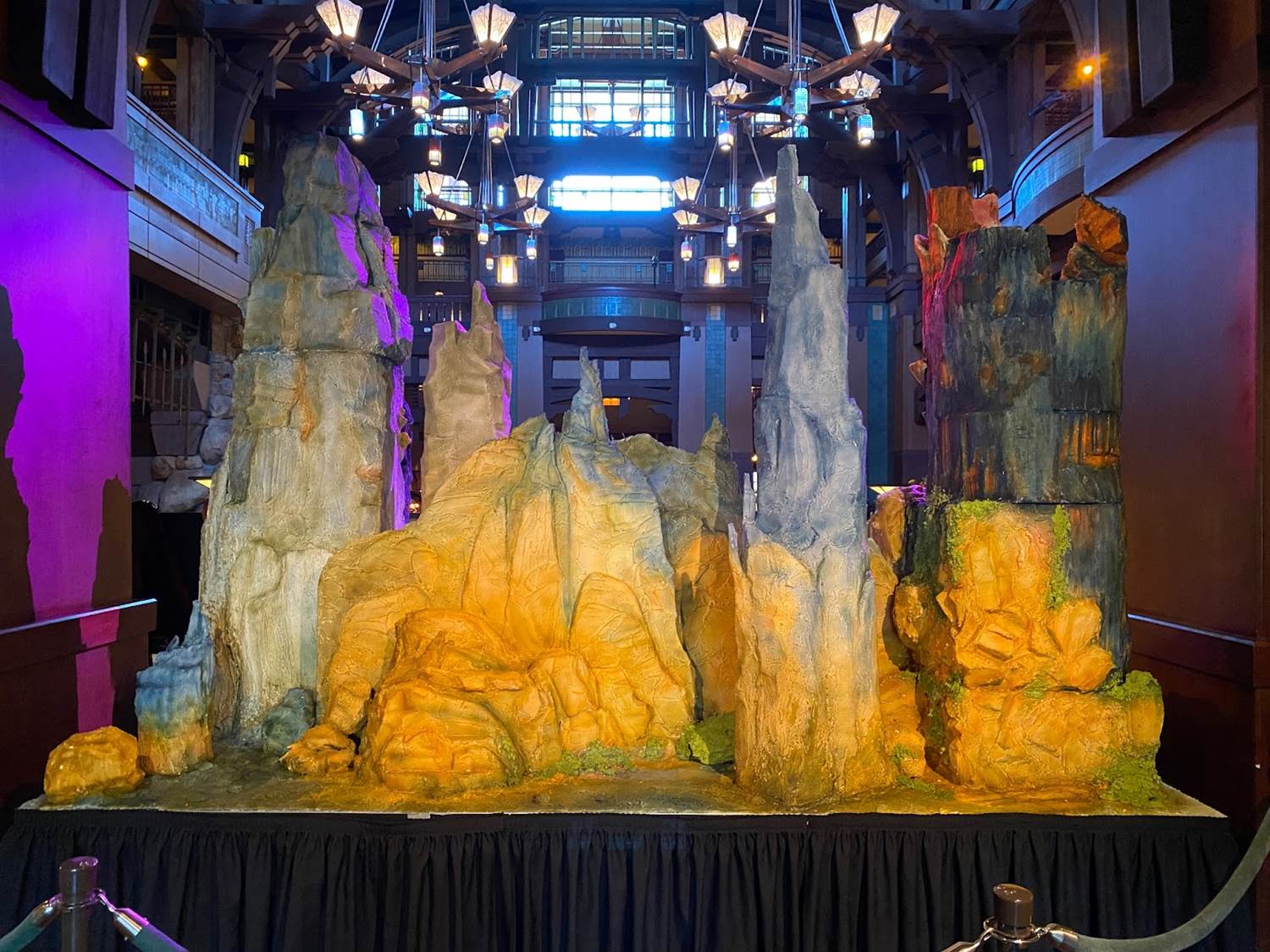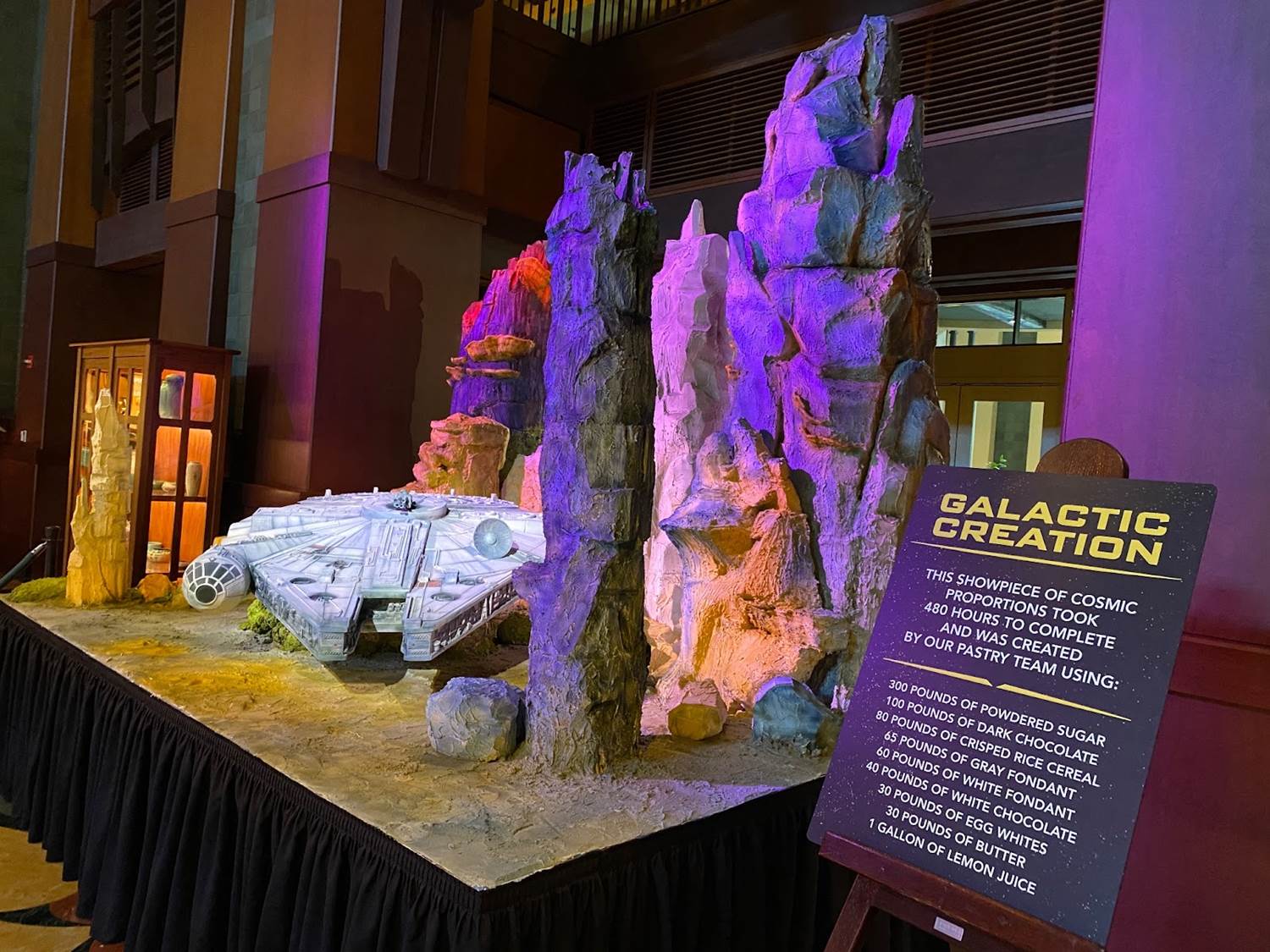An impressive culinary recreation of Black Spire Outpost is now on display in the lobby of Disney’s Grand Californian Hotel as the celebration of Season of the Force continues at the Disneyland Resort.