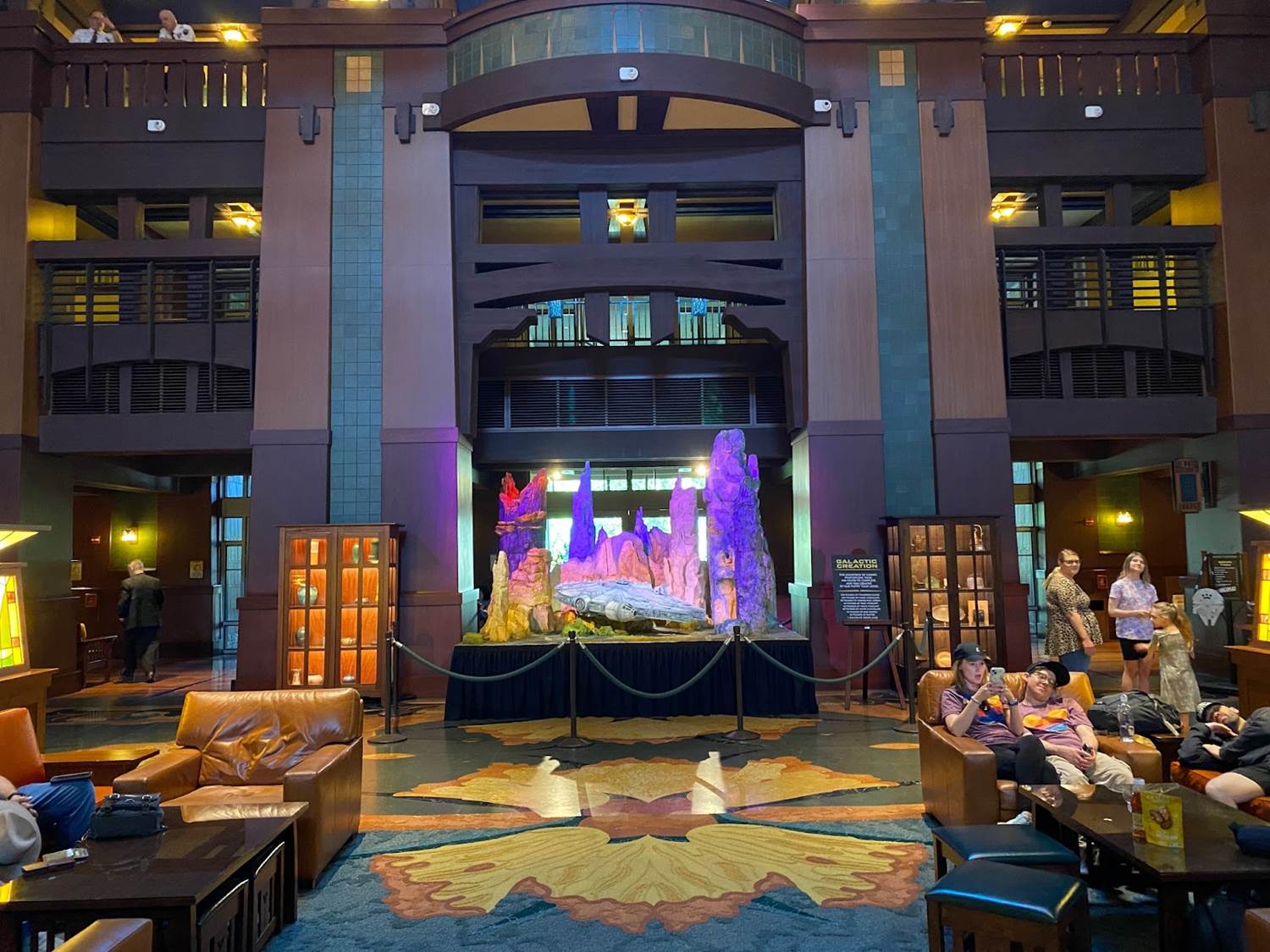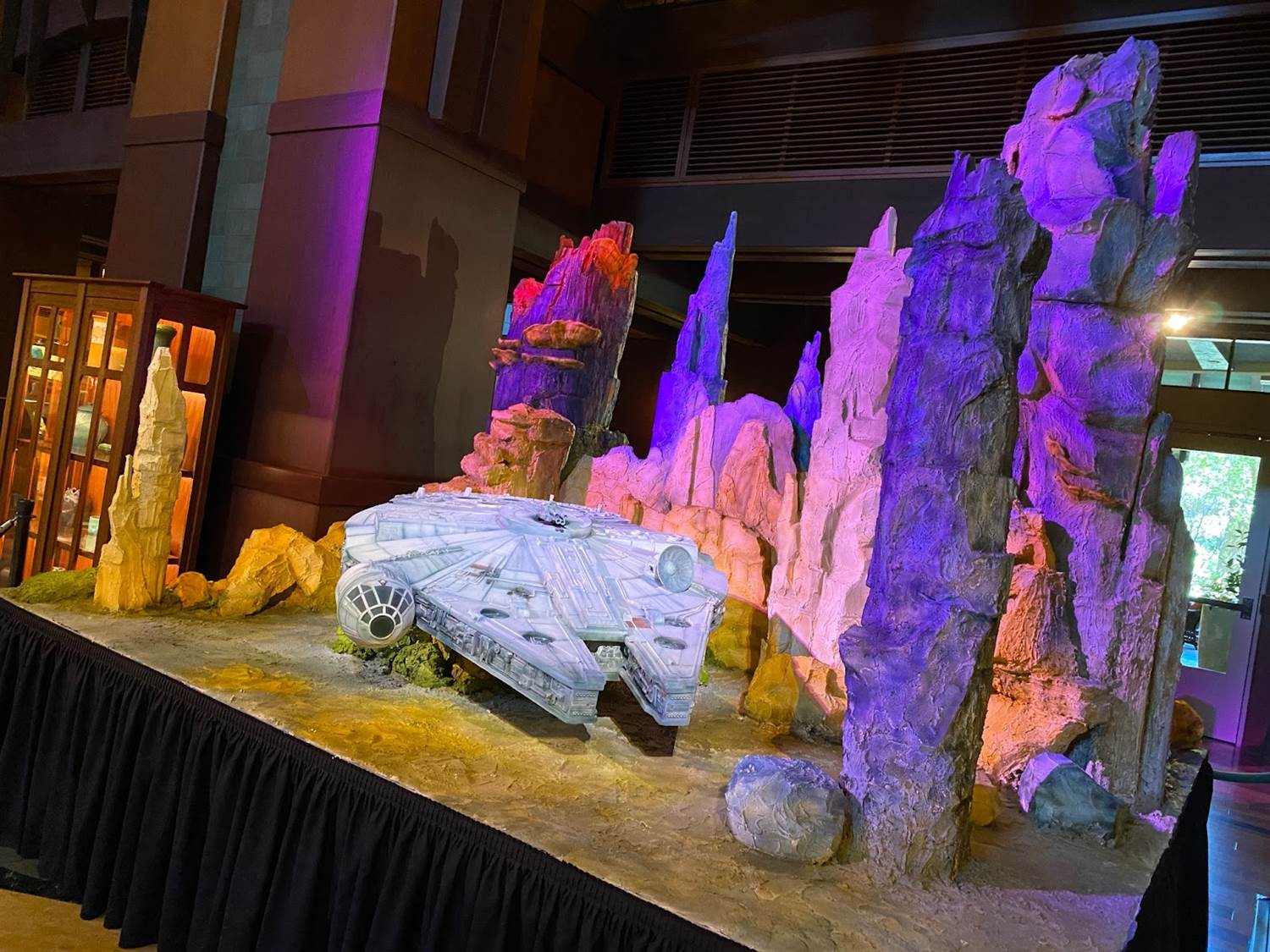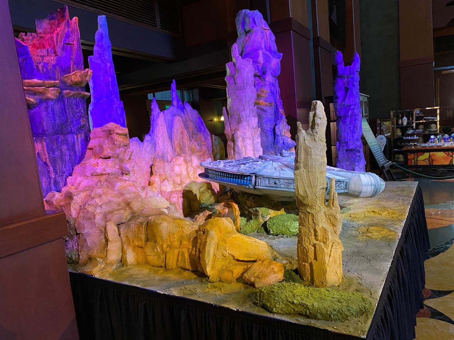 An impressive culinary recreation of Black Spire Outpost is now on display in the lobby of Disney’s Grand Californian Hotel as the celebration of Season of the Force continues at the Disneyland Resort.