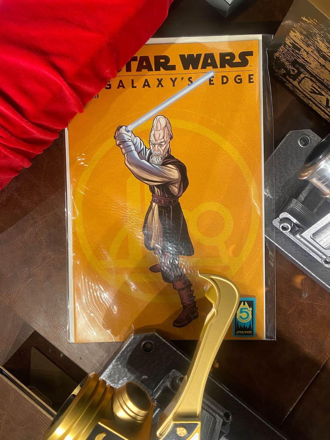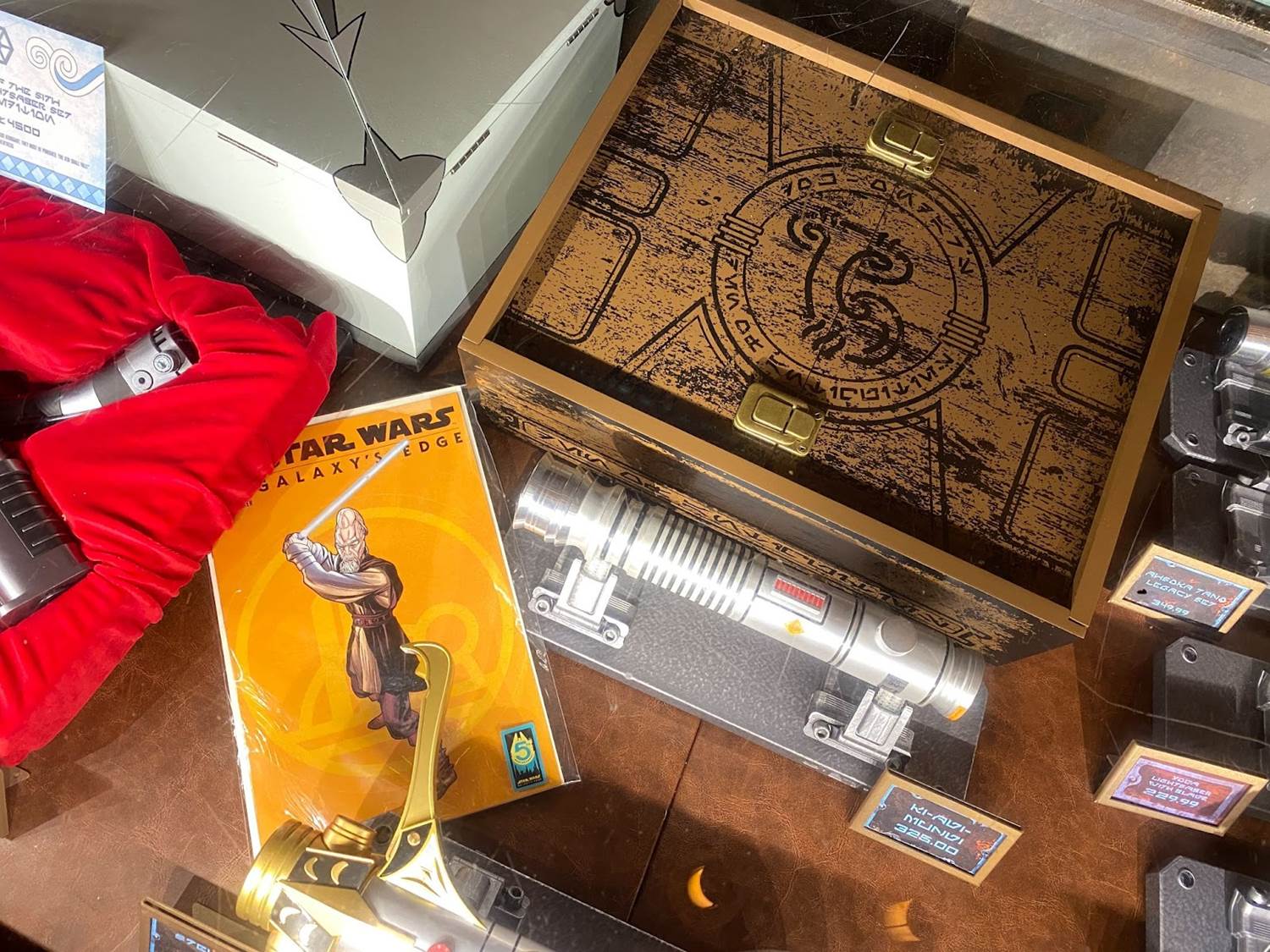 And lastly with regards to merchandise was the new Limited Edition Ki-Adi-Mundi Legacy Lightsaber hilt at Dok-Ondar’s Den of Antiquities. This very cool boxed set comes with a Variant Cover of the Star Wars: Galaxy’s Edge comic book and a really nicely designed wooden collector’s box emblazoned with the Dok-Ondar logo.
