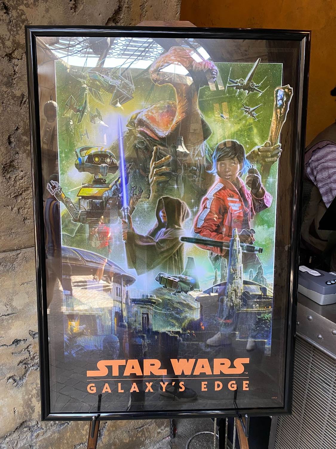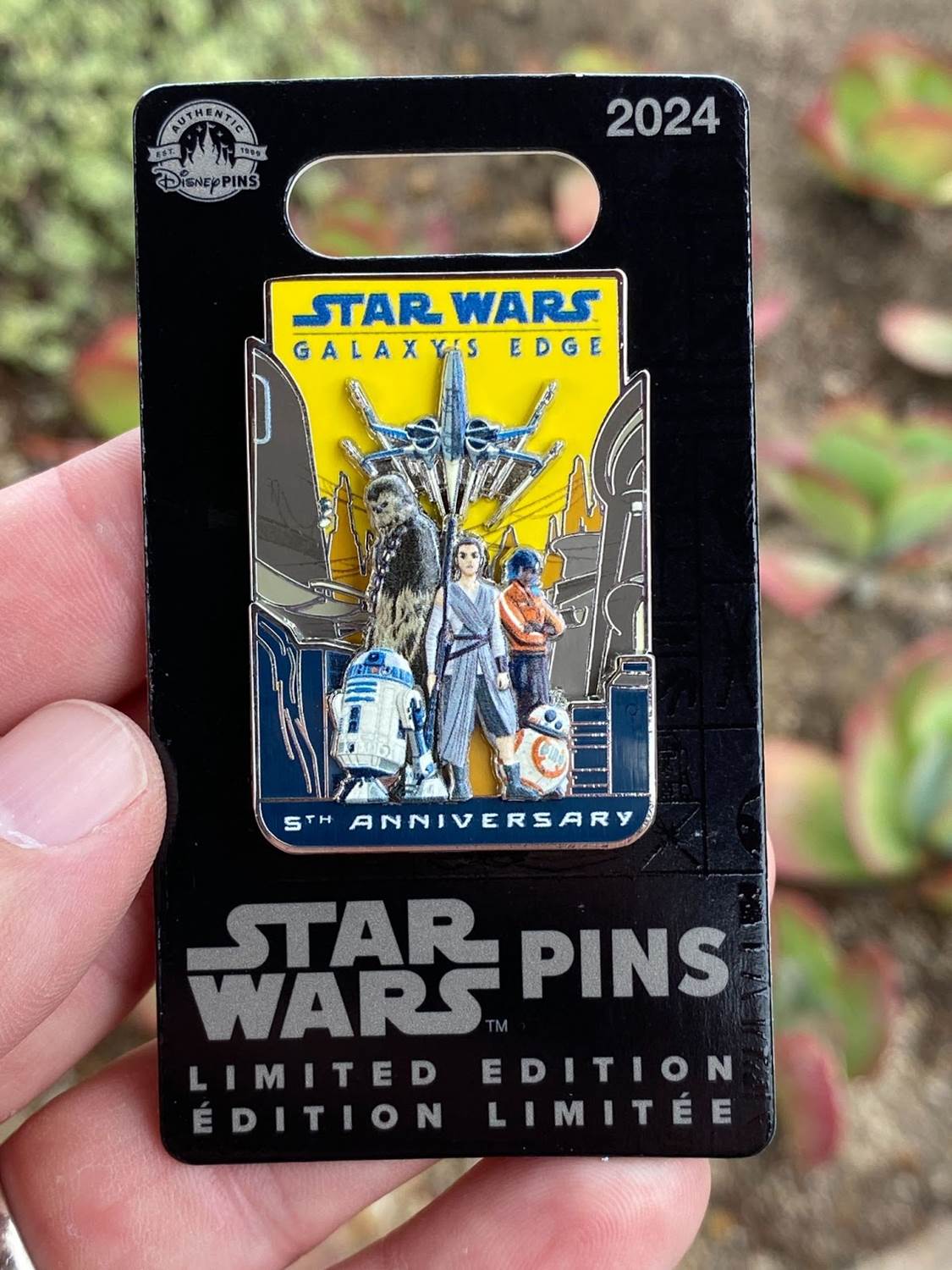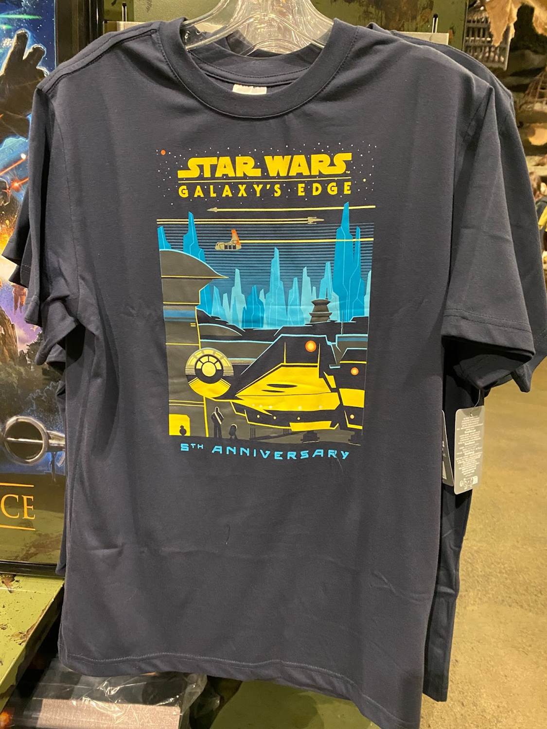 On the way into the park I stopped by the Star Wars Trading Post in the Downtown Disney District, and found special Star Wars: Galaxy’s Edge fifth anniversary merchandise available for sale. There was a unique three-poster set (featuring the attraction posters for Star Wars: Rise of the Resistance, Millennium Falcon: Smugglers Run, and Galaxy’s Edge itself), a t-shirt, and a pin with new art celebrating five years of Galaxy’s Edge.