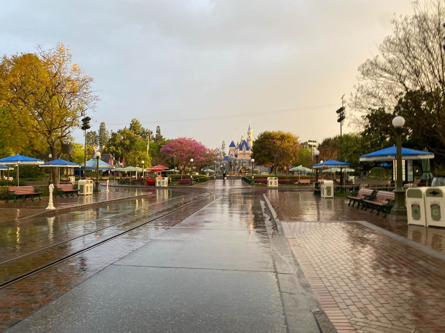 As you can see in the above photo, the ground on Main St. USA was wet from rain, which was still lightly falling Friday morning as we made our way toward Tomorrowland, but that didn’t turn out to be too big of an issue for most of the day. Our first stop for the event was at Star Tours: The Adventures continue to check out the new destination (the planet Seatos from Lucasfilm’s live-action Disney+ series Star Wars: Ahsoka) and one of the new holographic transmissions– we got Din Djarin and Grogu from The Mandalorian during that first ride. Now I’m not the biggest fan of motion simulator attractions (I tend to prefer theme park rides with physical sets and a bigger variety of animatronics) but I’ve always liked Star Tours, especially the original version that ran from 1987 through 2010.