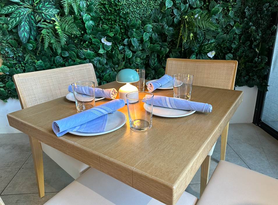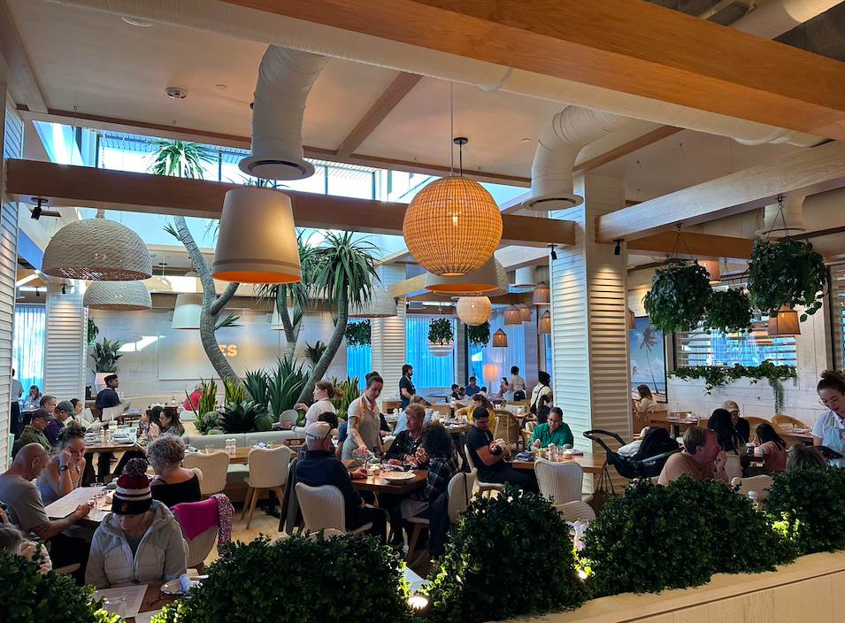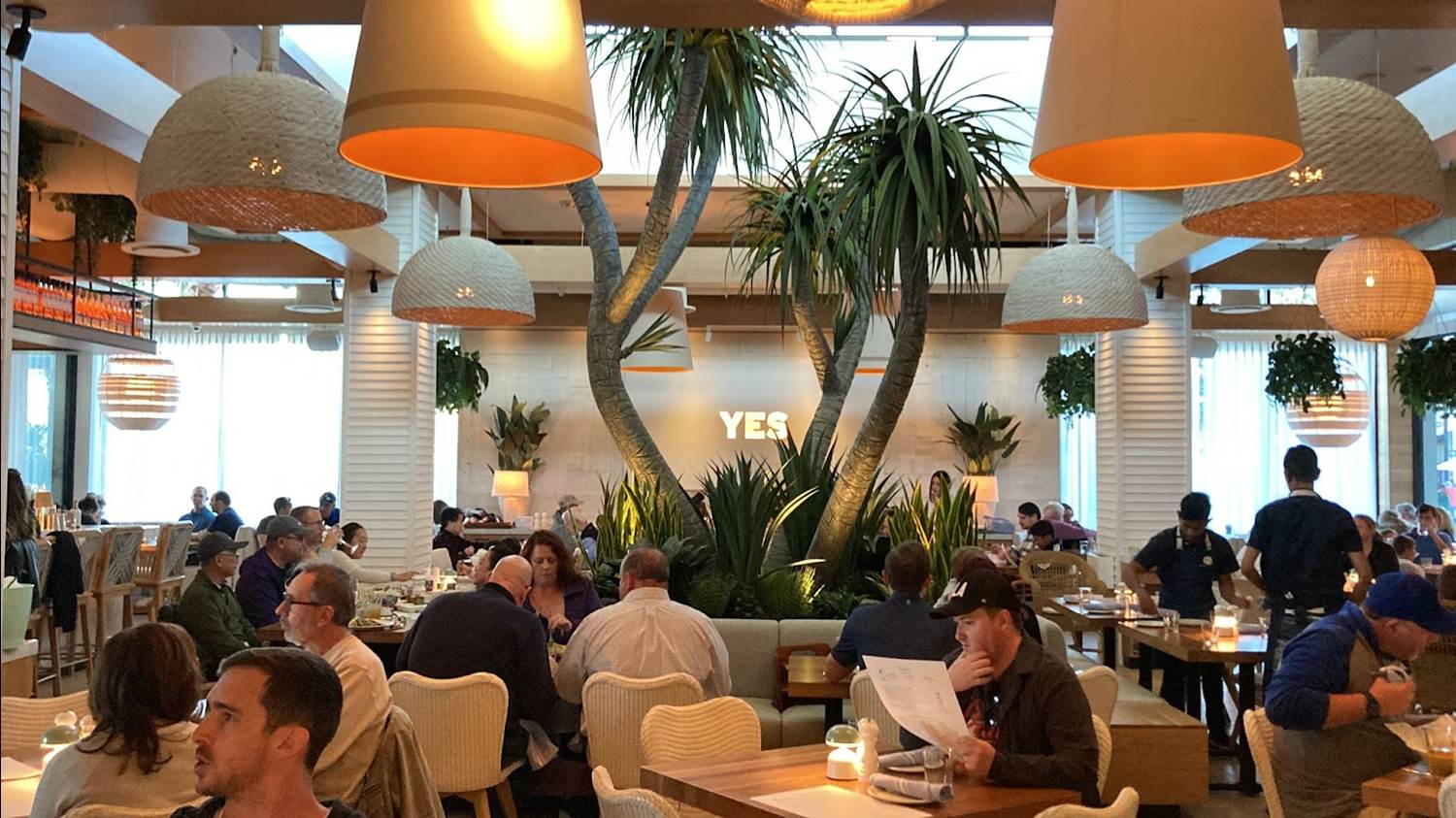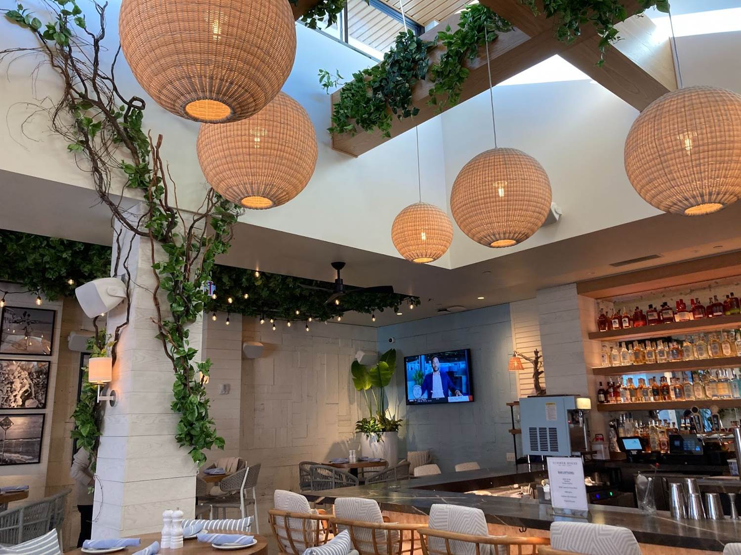 The restaurants interior is beautiful, with playful greenery spread throughout its largely open floorplan. There is plenty of seating both inside and out, including a separate room for private events.