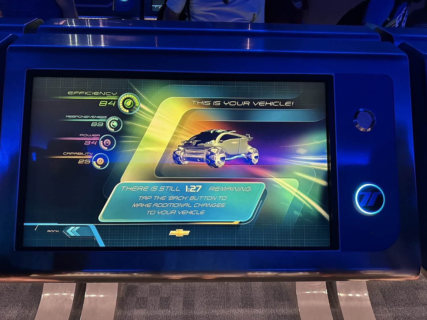 The preshow experience was the most changed, going from a winding queue passing all the various tests a car might be pushed through and a small screening room where the test team would show off what trials you and your vehicle will go through on the attraction - turning the experience into how cars are virtually designed and inviting guests so design their own car, which is loaded into the Sim Car on the Sim Track.