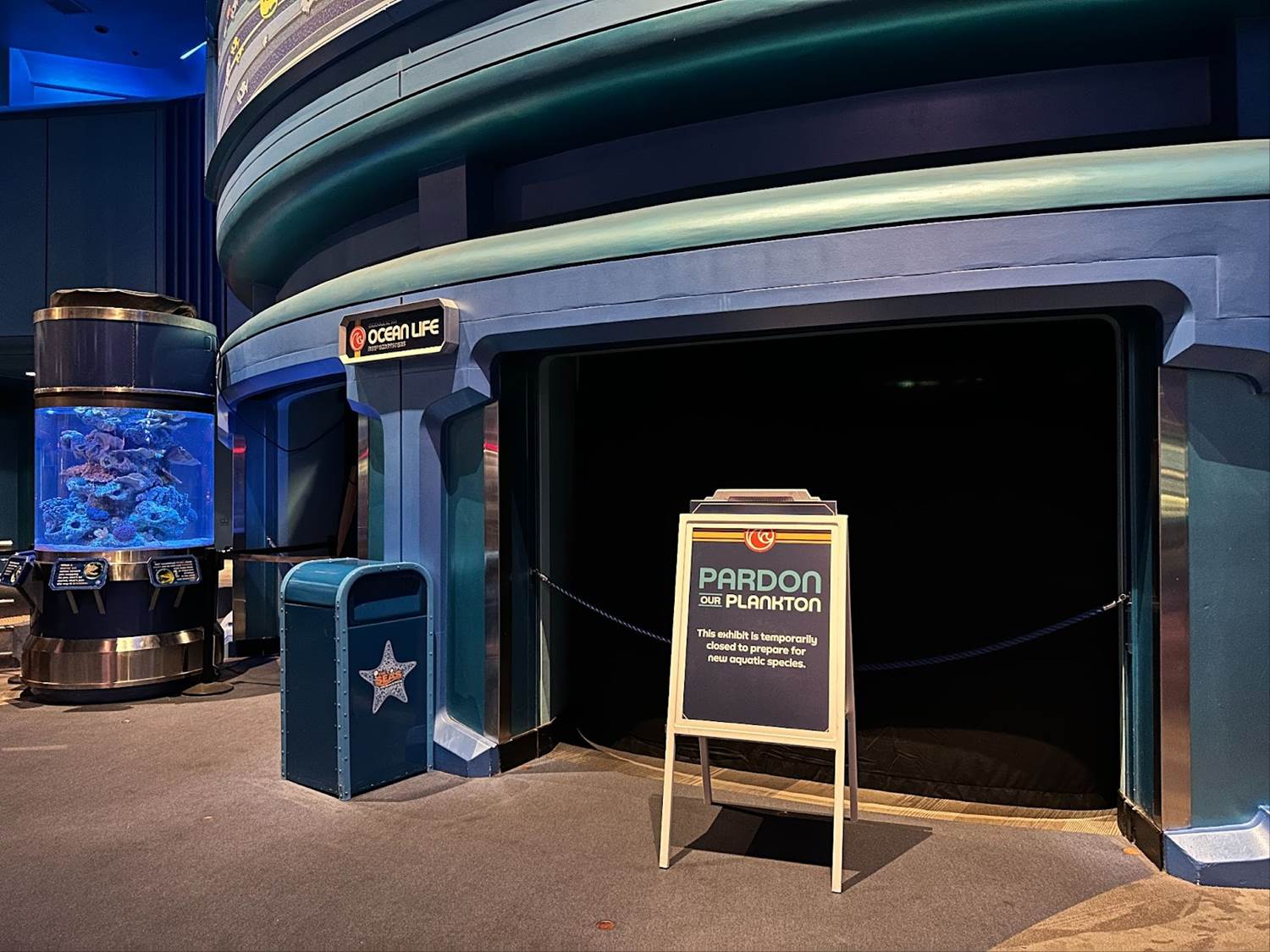 Elsewhere, signage has been changing throughout as part of ongoing improvements to the pavilion. Gone are most of the Mr. Ray and Nemo references not directly tied to the attraction itself. Instead, it looks like the retro-futuristic fonts that have been popping up around EPCOT are also being incorporated into The Seas.