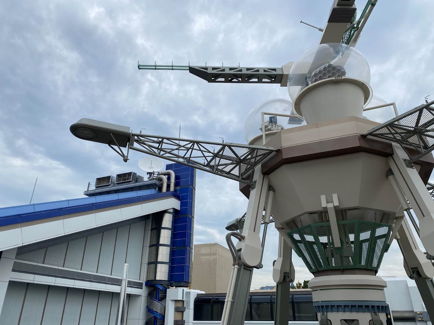 Heading outside, on the upper level of Tomorrowland, you’ll find more seating connected to the exit of Star Tours. As Star Tours sees minimal waits here at Tokyo Disneyland, you’ll never find too many people up here – giving you a great bird’s eye view of Tomorrowland!