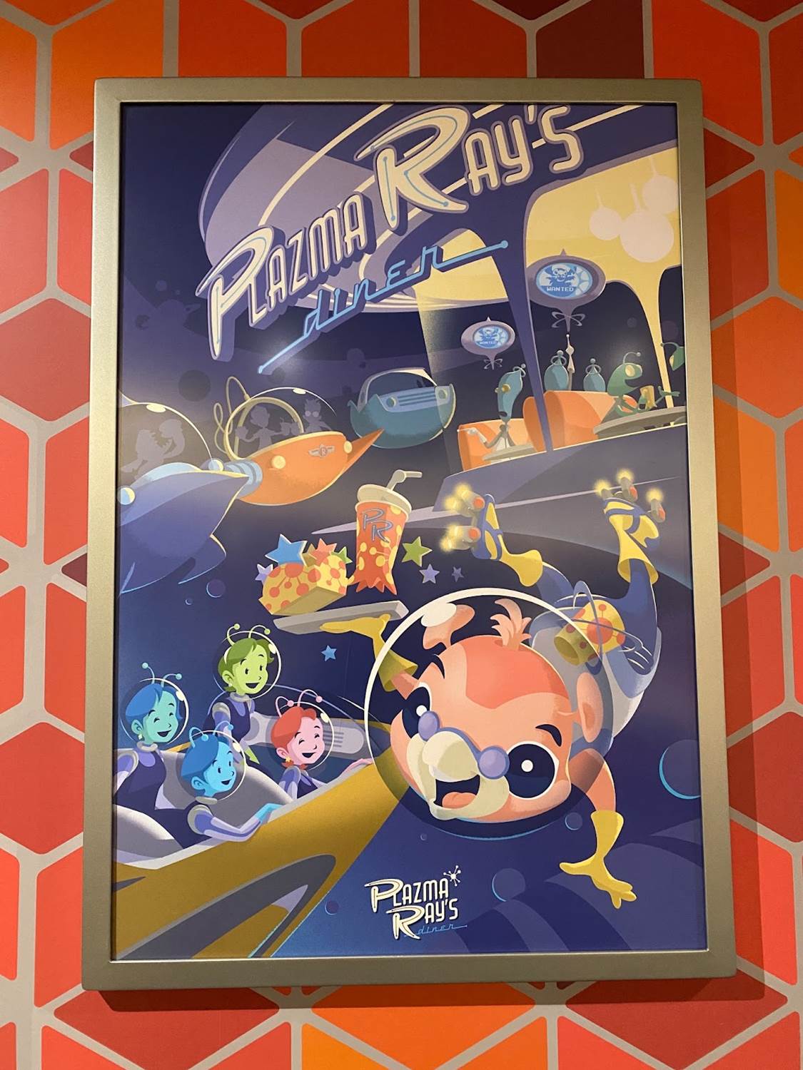 Another restaurant in Tomorrowland that brought me some joy was Plazma Ray’s Diner. Located in the spot that would be home to the Tomorrowland Terrace in the Magic Kingdom, this somewhat recently remodeled features a retro-futuristic theme with some delightful posters including the cute Plazma Ray character. Unlike the Magic kIngdom, this restaurant is completely enclosed, but you can see how it features essentially the same layout. Another thing that brought a smile to my face was the soundtrack, which consists of an old Tomorrowland music loop from the 90s – including some familiar tracks to longtime Magic Kingdom visitors, such as Vangelis’ “Elsewhere."