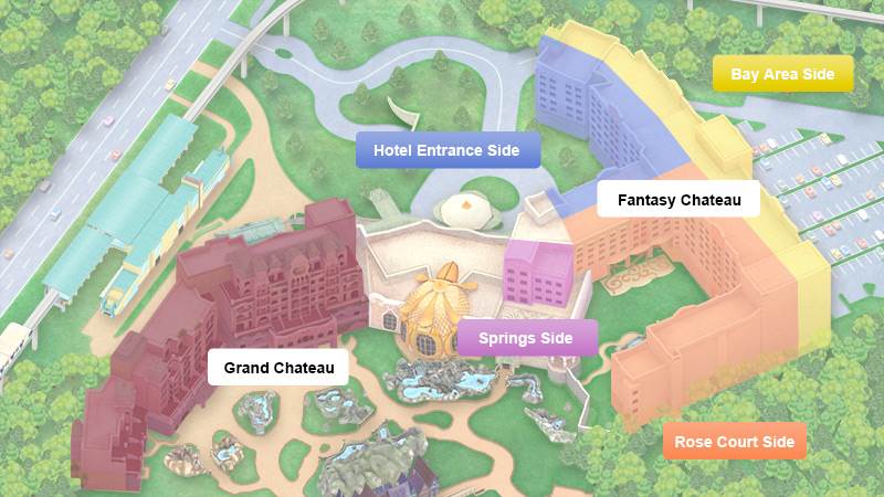 - The Fantasy Chateau offers rooms adorned with motifs of the flora and fauna of Fantasy Springs, while the Grand Chateau offers rooms that provide guests with the finest accommodation experience available at Tokyo Disney Resort.