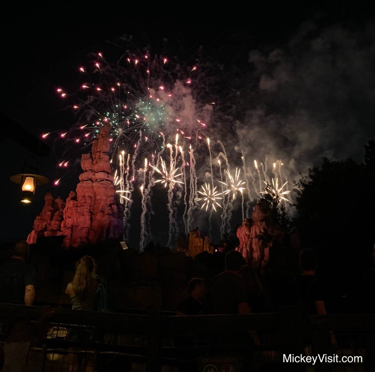 4) If you’re interested in a less crowded fireworks spot, there are several great alternative places to watch the fireworks. One of our favorite spots is in front of “it’s a small world," where you’ll be able to enjoy the projections on the facade and the fireworks off to the left. You can also watch the show from the Rivers of America in Frontierland, with music playing and projections on the water screens. If you’re seeing the first showing of Fantasmic, this spot is a great choice because you can just stay where you are. This is one of our favorite less crowded fireworks viewing spots at Disneyland.