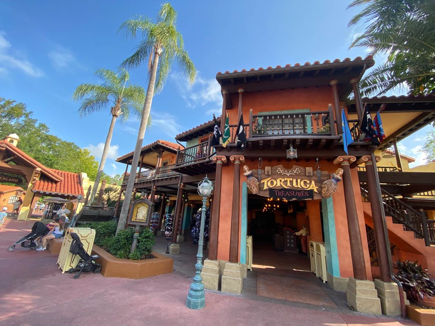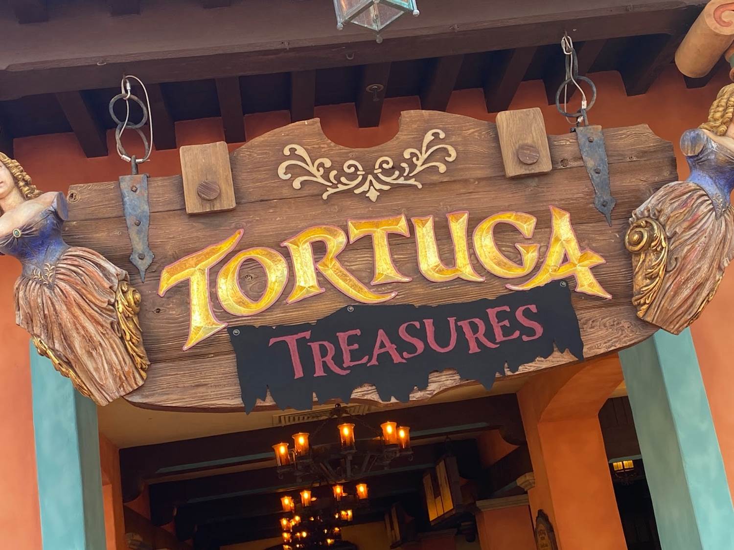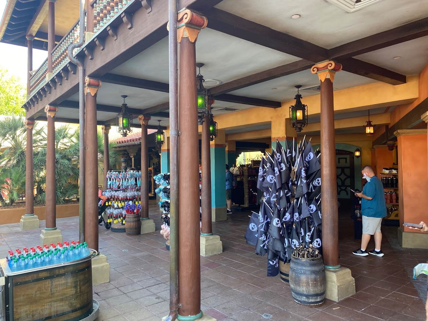 With construction walls up throughout most of the open-air exit gift shop of Pirates of the Caribbean, there’s no space for merchandise. Tortuga Tavern across the street closed recently, and we’ve now learned that is so it can become a temporary merchandise location – now called Tortuga Treasures.