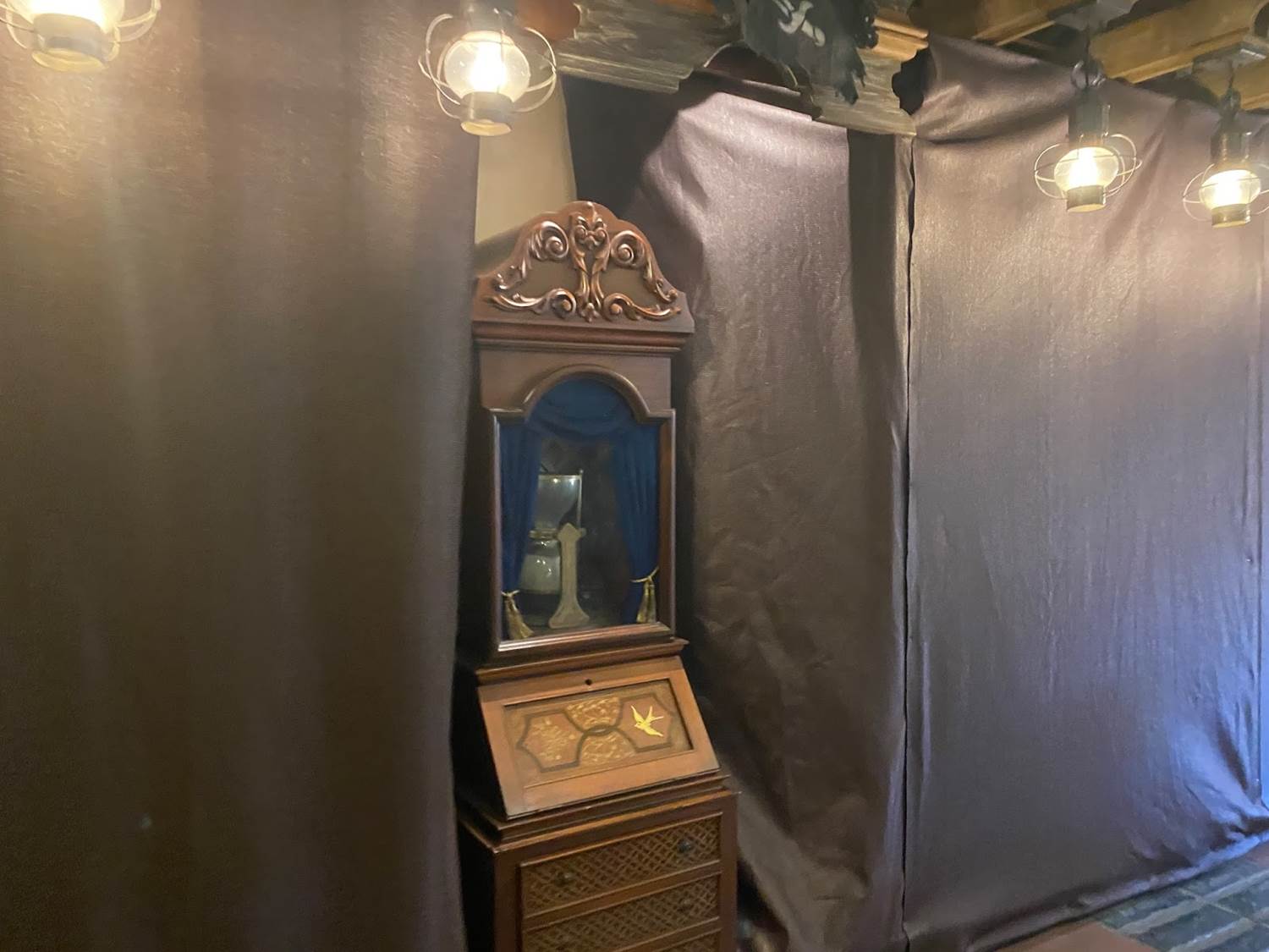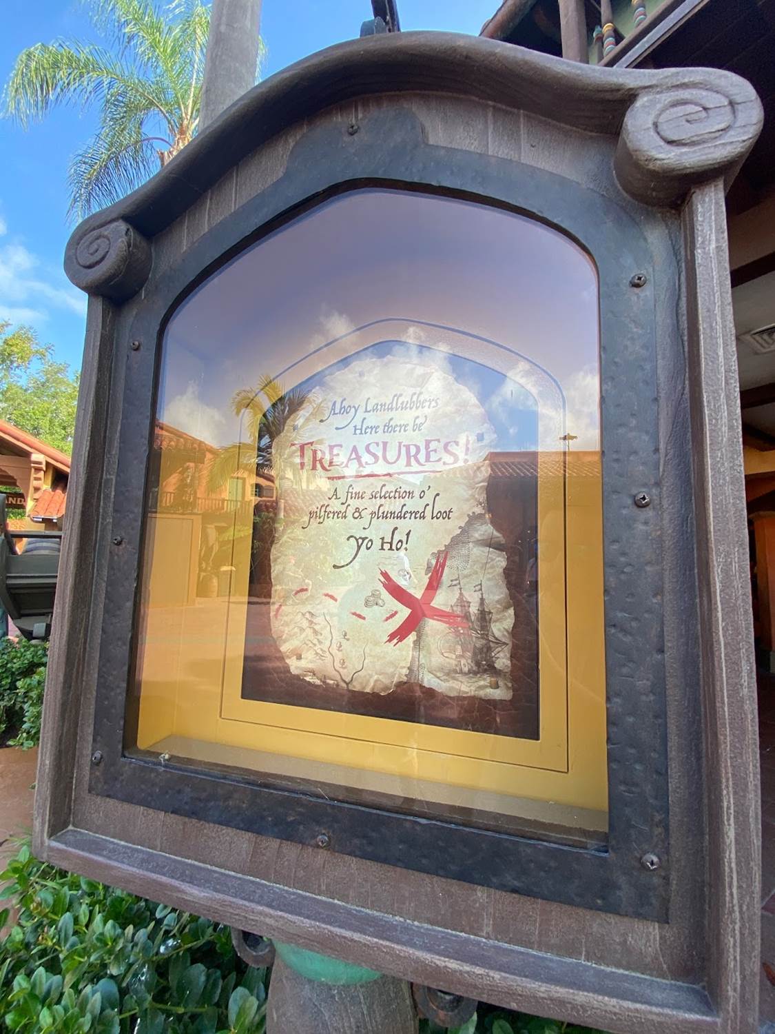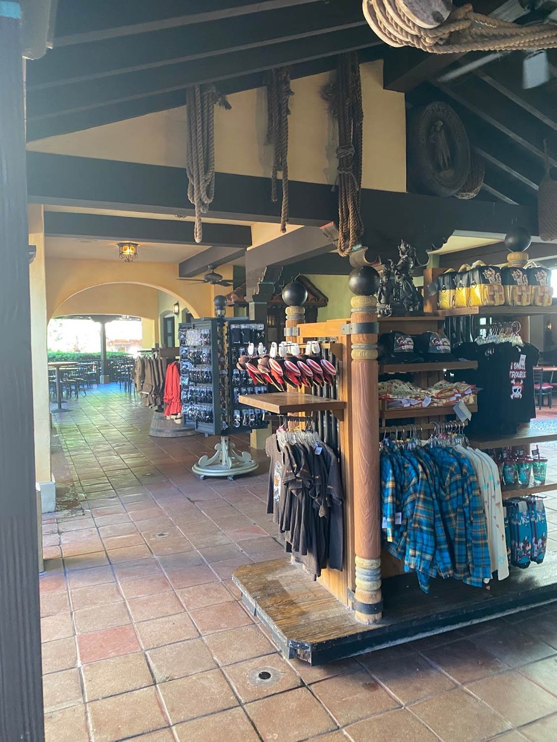 Signage has been updated, with merchandise racks throughout offering a similar vibe to the usual Pirates of the Caribbean gift shop.