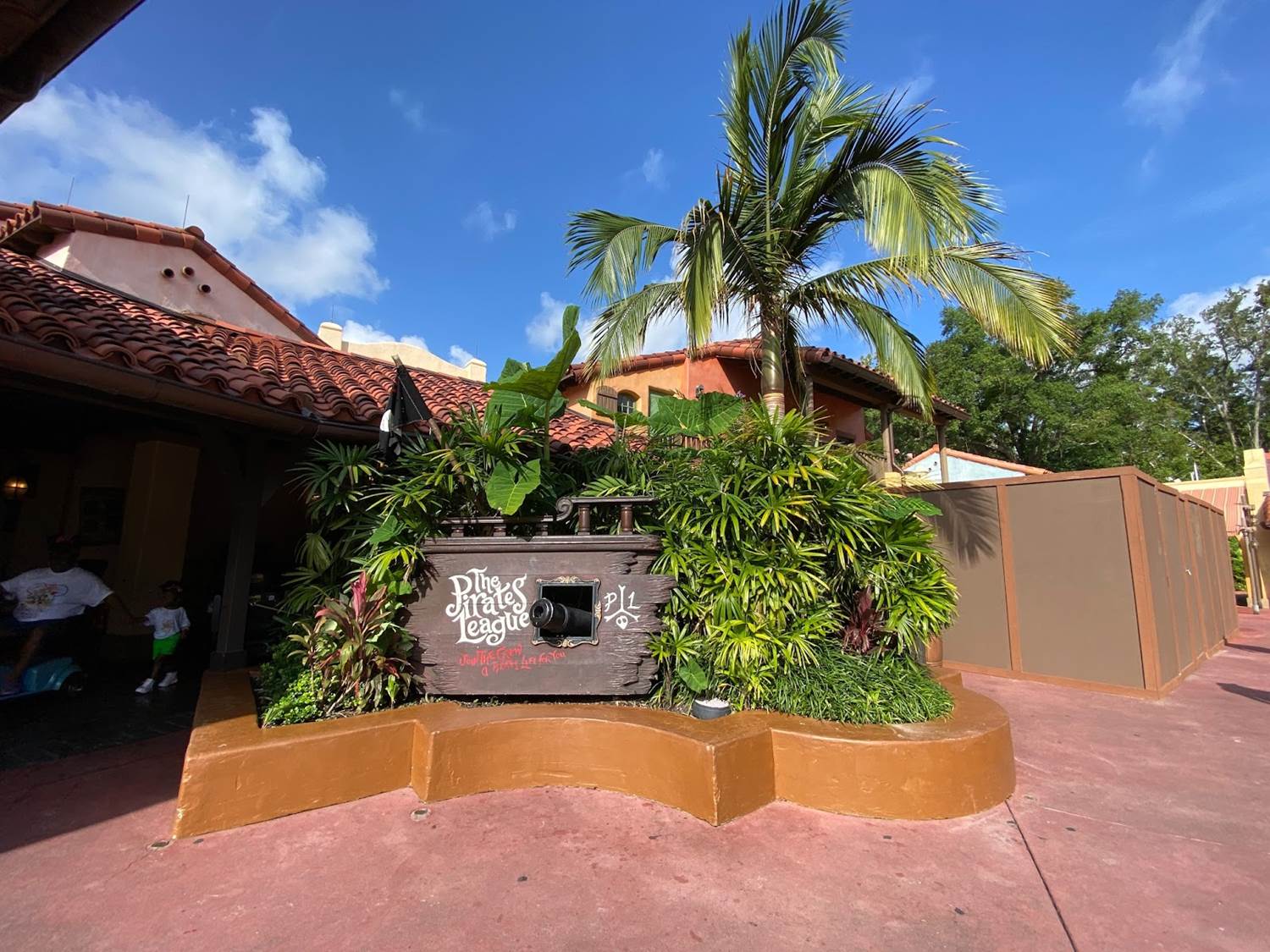 Construction is taking over Caribbean Plaza in the Magic Kingdom as Adventureland prepares to welcome a new Pirates of the Caribbean themed lounge, necessitating the move of merchandise across the street to the newly renamed Tortuga Treasures.