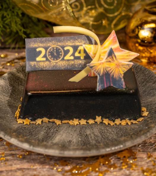 - New Year's Cake Bar: Strawberry mousse, champagne gel, vanilla cake, mirror glaze, and chocolate décor (Available at Roaring Fork from Dec.31 through Jan. 1)