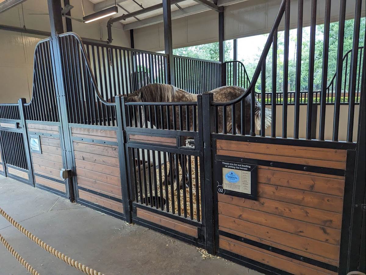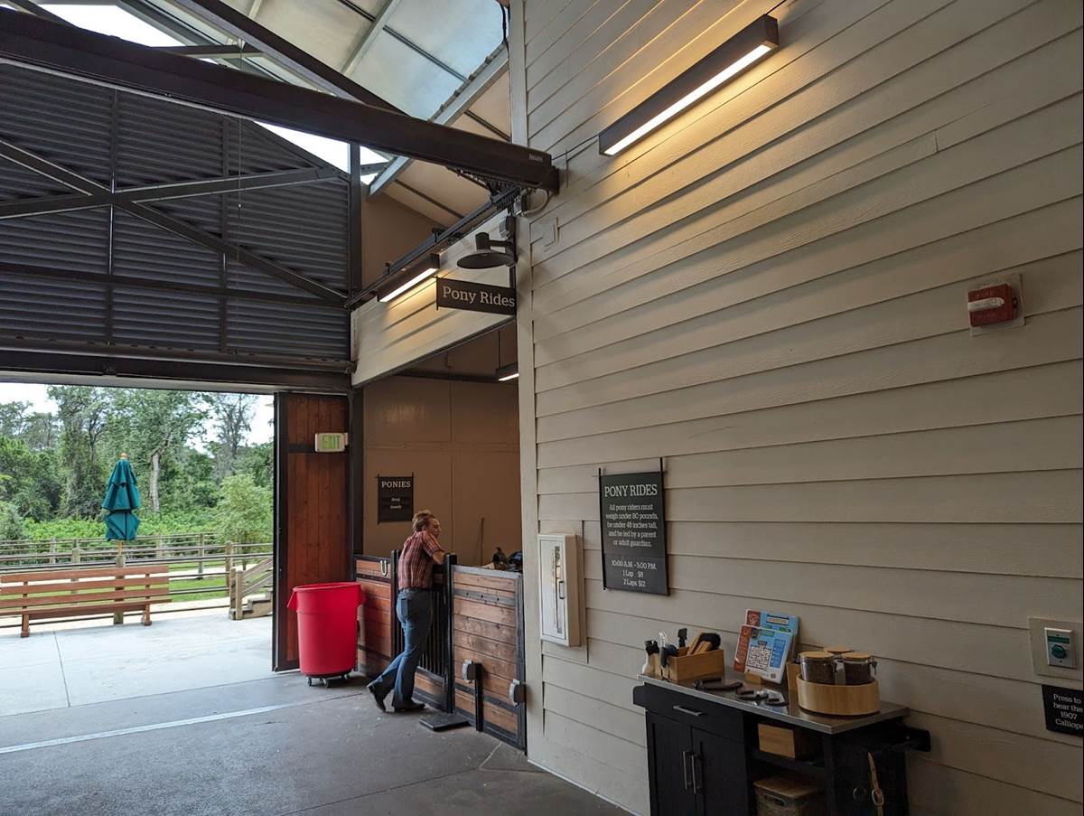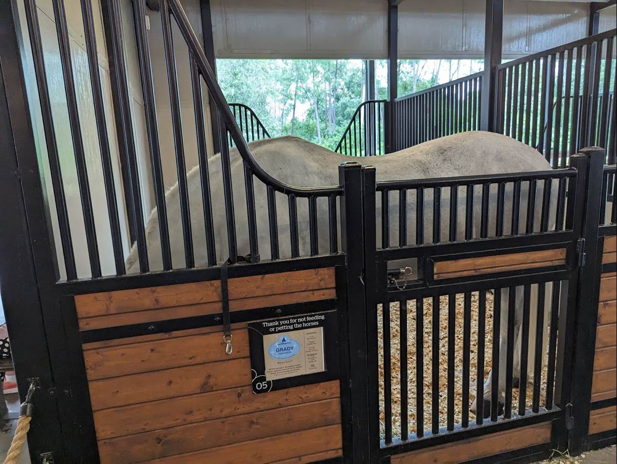The original Tri-Circle-D Ranch was built before the grand opening of Walt Disney World in 1971 to fulfill Walt Disney’s dream of having horses at the Magic Kingdom. The new barn is twice the size of the original and includes larger stalls for the horses equipped with automatic water stations, a wedding harness room for Cinderella’s ponies. The new Tri-Circle-D Ranch is located near the bus loop by Pioneer Hall.